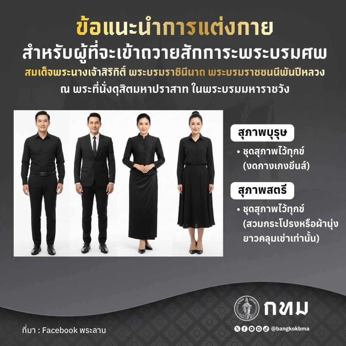 ทั้งนี้ ขอความร่วมมือประชาชนแต่งกายสุภาพ สำรวมกิริยา และปฏิบัติตามคำแนะนำของเจ้าหน้าที่ เพื่อให้การเข้ากราบถวายบังคมพระบรมศพเป็นไปด้วยความเรียบร้อย สมพระเกียรติ และสะท้อนถึงความจงรักภักดีของพสกนิกรชาวไทยอย่างสมบูรณ์