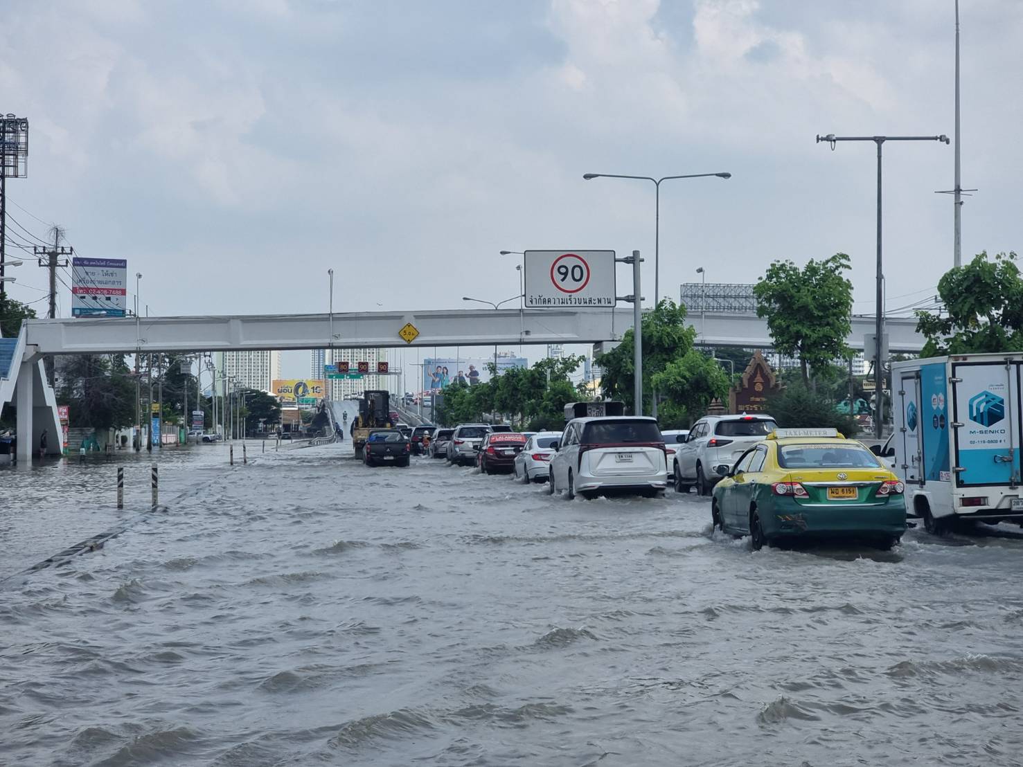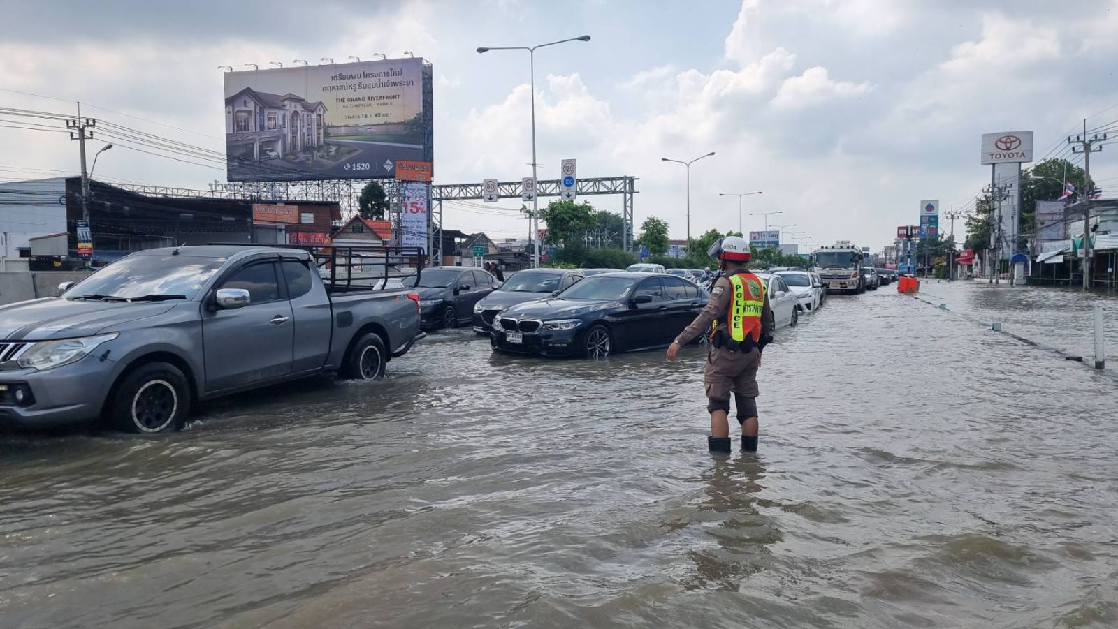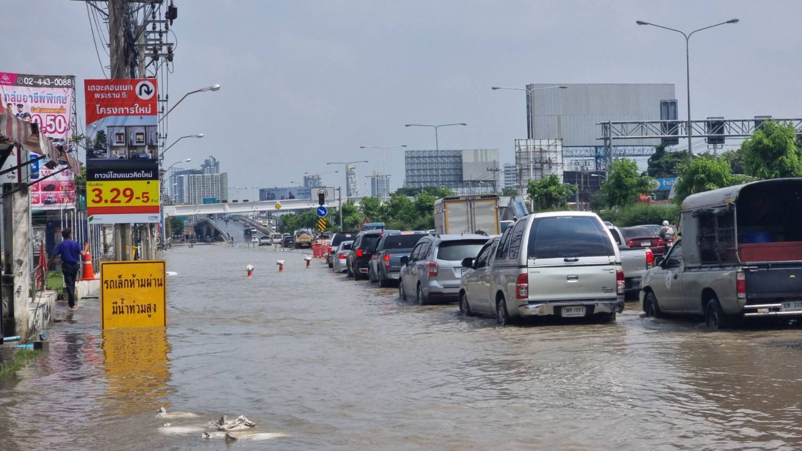 ถนนนครอินทร์พระราม 5 ฝั่งบางศรีเมืองวิกฤตหนัก หลังน้ำในแม่น้ำเอ่อล้นท่วมถนนกว่า 50 เซนติเมตร จราจรเตือนรถเล็กรถไฟฟ้าไม่ควรผ่าน หลีกเลี่ยงเส้นทางชั่วคราว