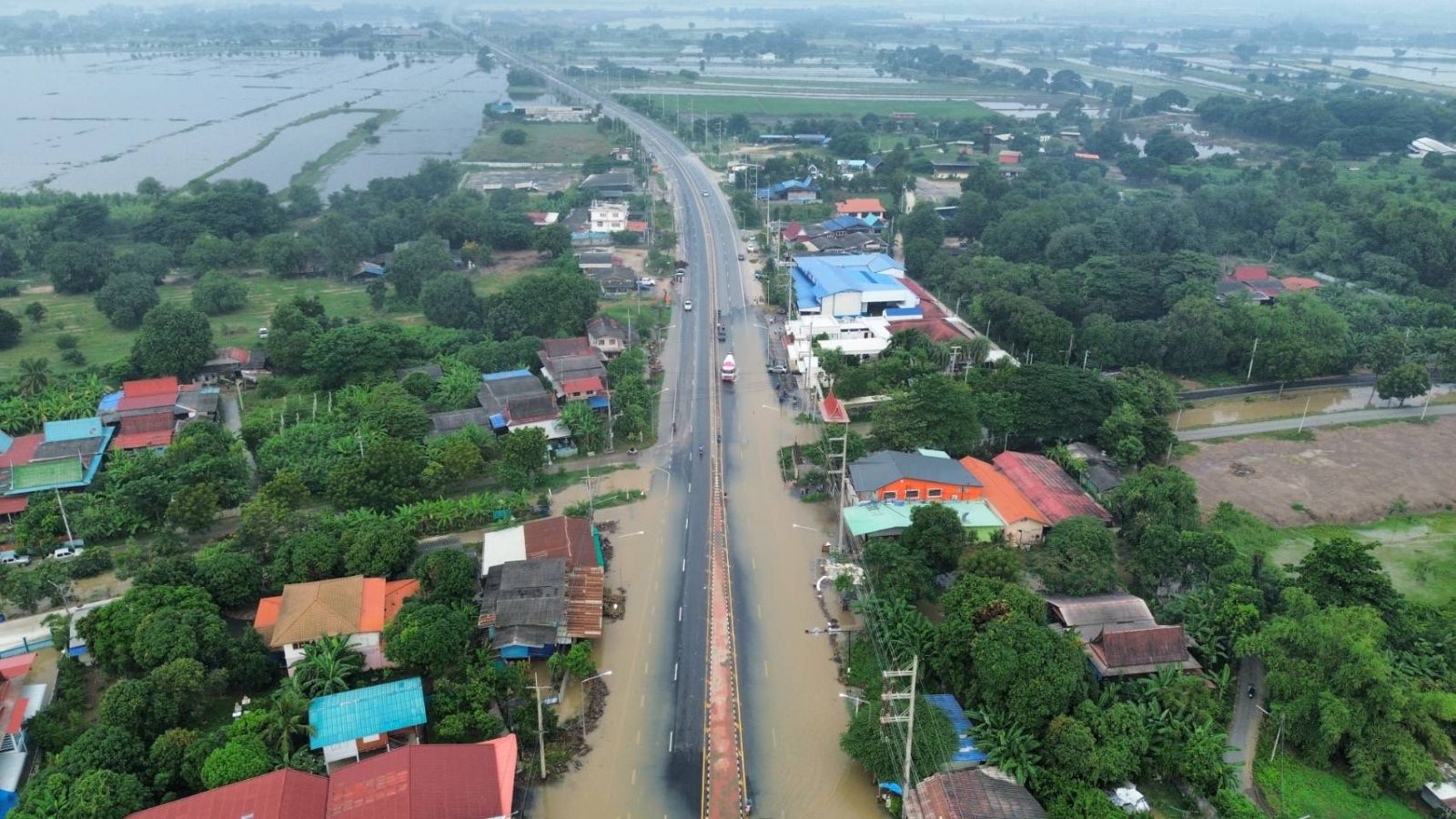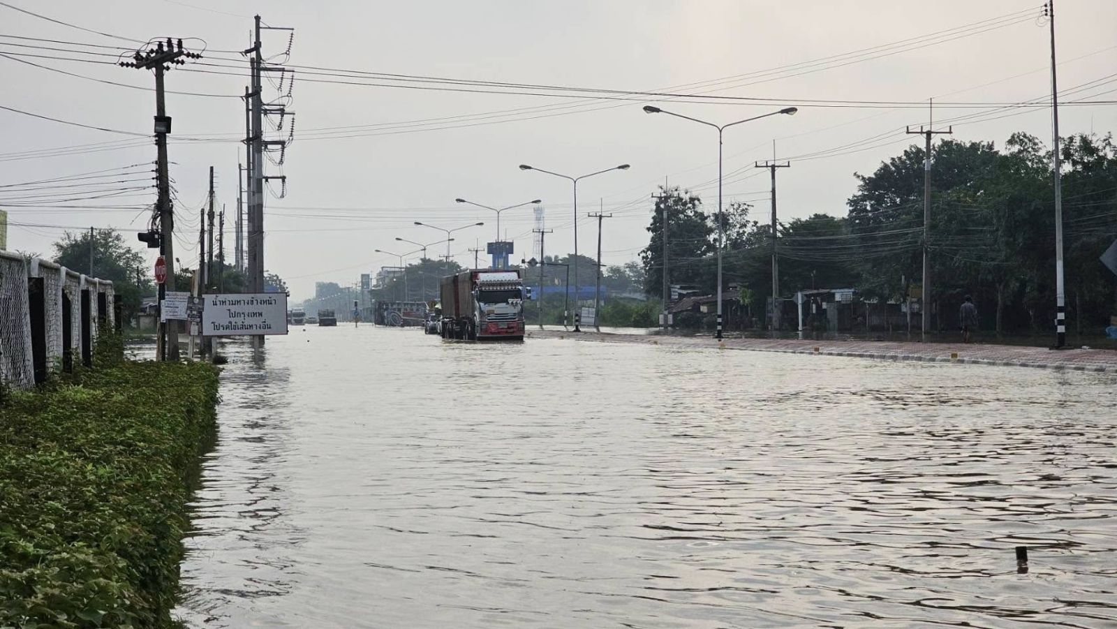 08.00 น. น้ำท่วมผิวการจราจร ทล.33 ป่าโมก-สุพรรณฯ ทั้ง 2 ฝั่ง ปริมาณน้ำราว 30-40 ซม.