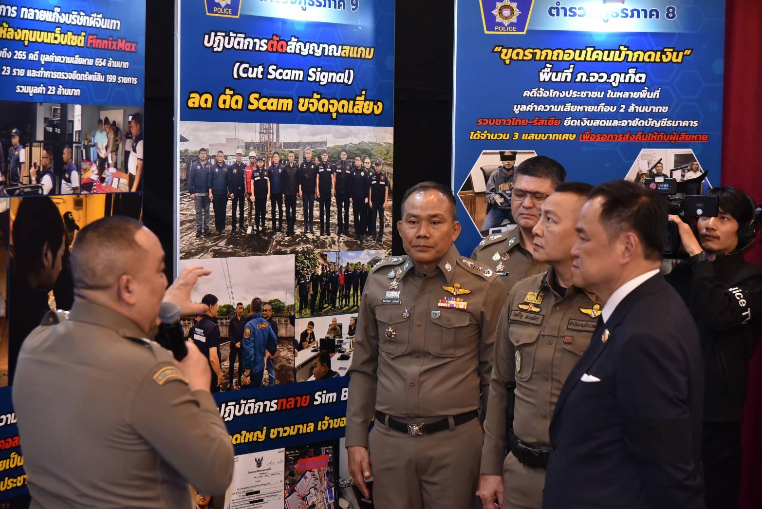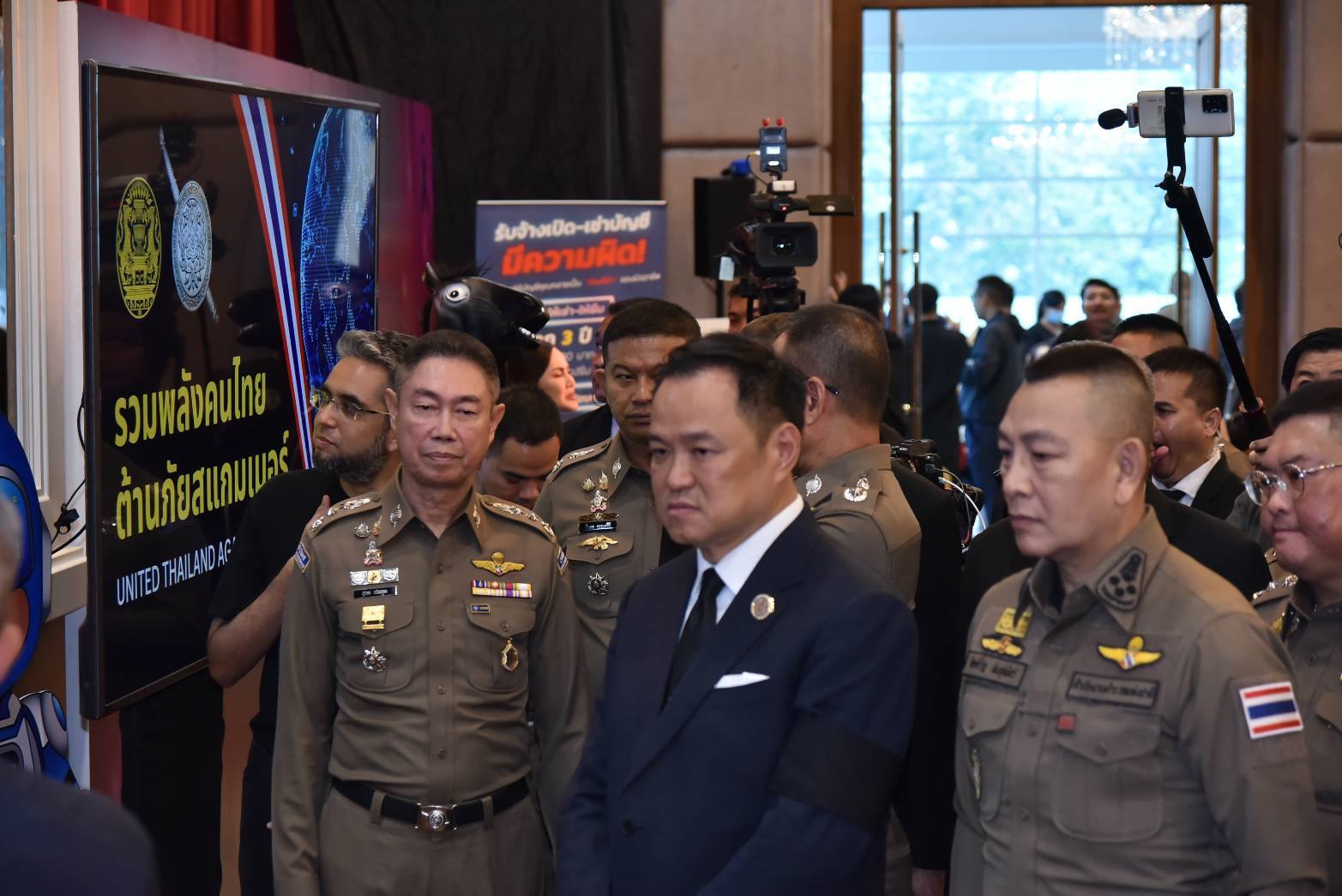 วันนี้ (10 พ.ย.68) นายอนุทิน ชาญวีรกูล นายกรัฐมนตรีและรัฐมนตรีว่าการกระทรวงมหาดไทย เป็นประธานการแถลงข่าวการป้องกันและปราบปรามการกระทำความผิดอาชญากรรม ทางเทคโนโลยี “รวมพลังคนไทย ต้านภัยสแกมเมอร์” United Thailand Against Scammers โดยมี นางสาวไตรศุลี ไตรสรณกุล เลขาธิการนายกรัฐมนตรี, พล.ต.อ.กิตติ์รัฐ พันธุ์เพ็ชร์ ผู้บัญชาการตำรวจแห่งชาติ (ผบ.ตร.) พร้อมด้วย รอง ผบ.ตร. ประกอบด้วย พล.ต.อ.ธนา ชูวงศ์, พล.ต.อ.นิรันดร เหลื่อมศรี, พล.ต.อ.กรไชย คล้ายคลึง, พล.ต.อ.ธัชชัย ปิตะนีละบุตร และผู้ช่วย ผบ.ตร., รองจเรตำรวจแห่งชาติ, ผู้บัญชาการและผู้แทนหน่วยต่างๆ ที่เกี่ยวข้อง ร่วมงาน