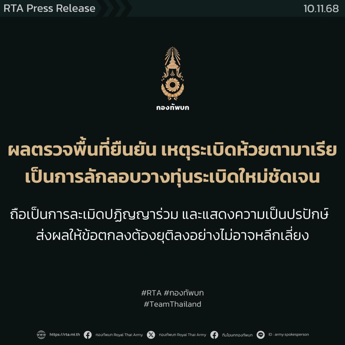 ศูนย์ประชาสัมพันธ์กองทัพบก โดยทีมโฆษกกองทัพบก, 10 พฤศจิกายน 2568