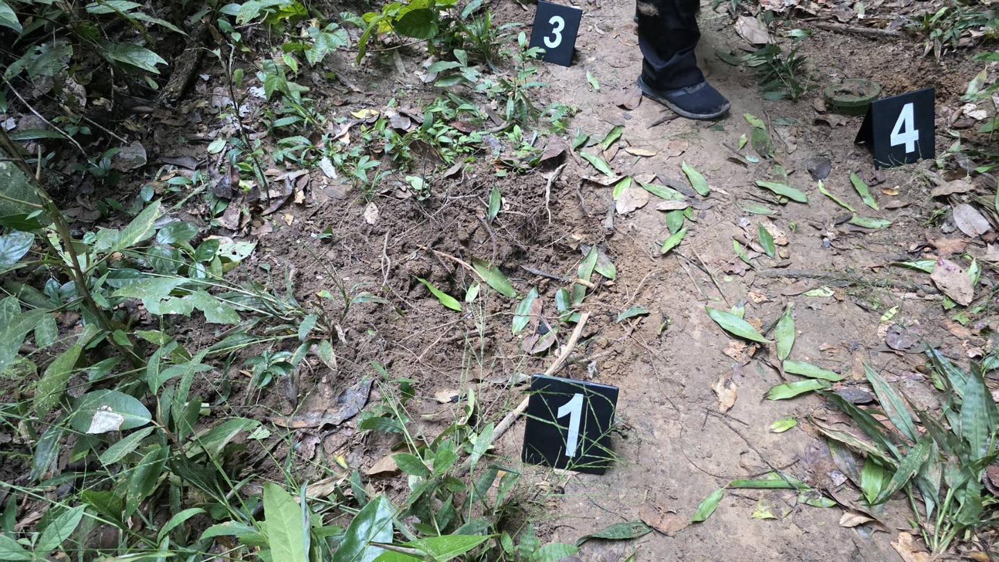 2. ชิ้นส่วนทุ่นระเบิด PMN-2 อยู่ภายในหลุมและพื้นที่ใกล้เคียง