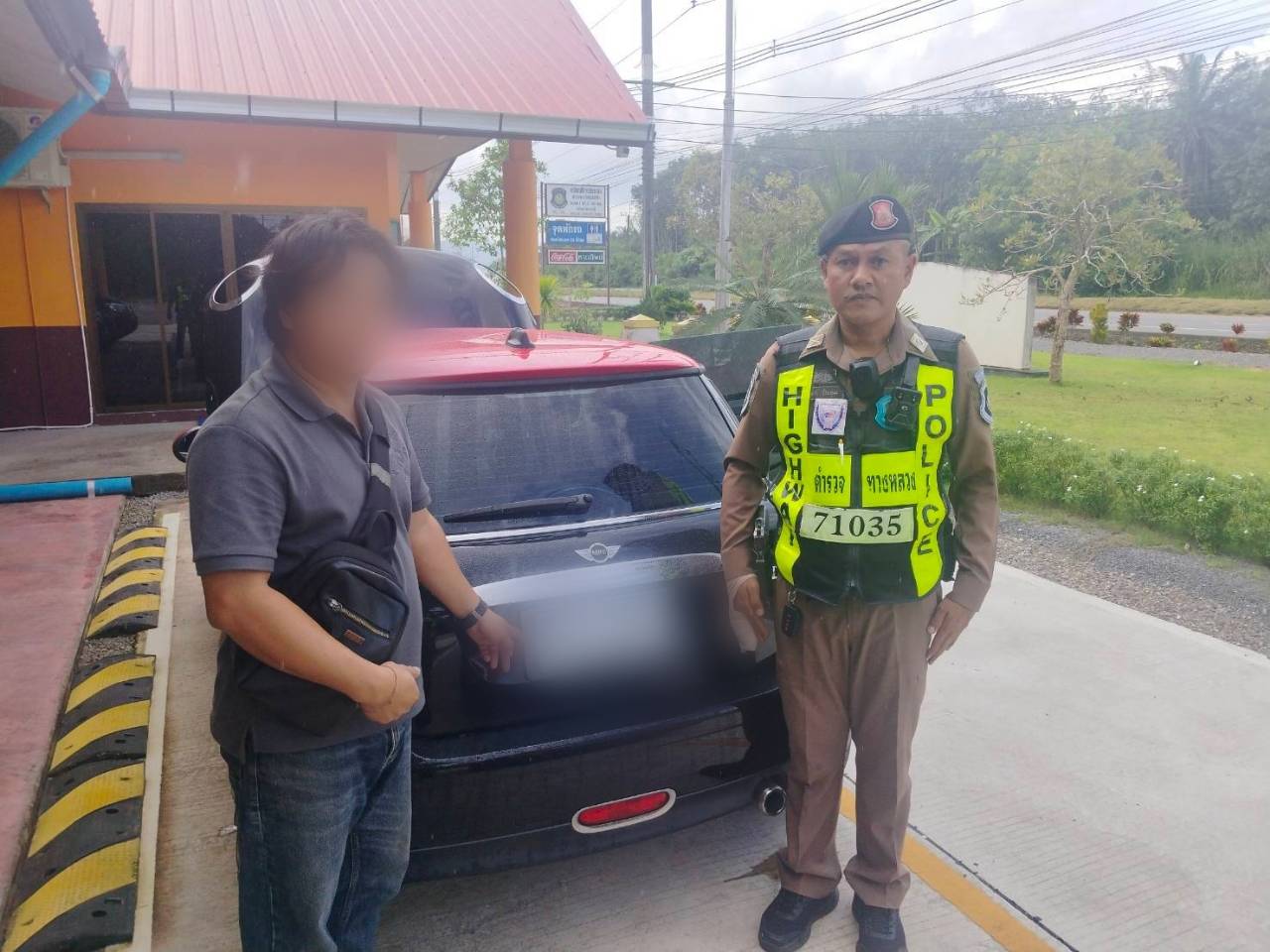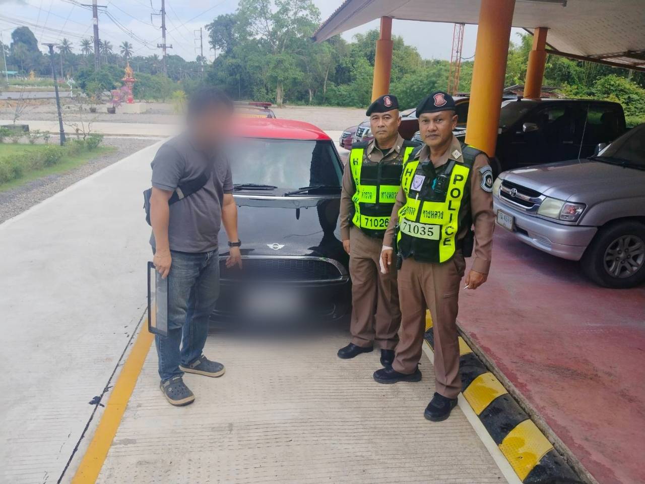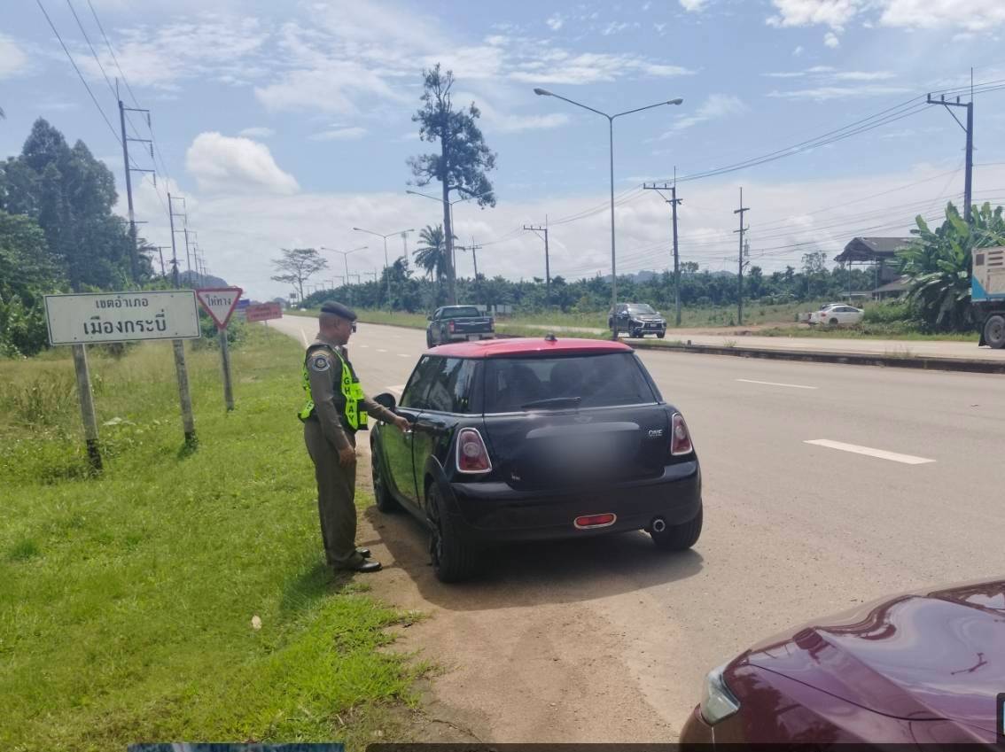 สืบเนื่องจากหน้าที่ตำรวจทางหลวงออกตรวจพื้นที่รับผิดชอบตามปกติขณะถึงถนนในเขตอ่าวลึก จ.กระบี่ พบรถยนต์เก๋งยี่ห้อมินิคูเปอร์สีดำ-แดง มีท่าทีพิรุธน่าสงสัย จึงส่งสัญญาณให้หยุดรถเพื่อตรวจสอบจาก การตรวจสอบพบว่าผู้ขับขี่ไม่มีเอกสารคู่มือจดทะเบียนรถมาแสดง อีกทั้งเจ้าหน้าที่สังเกตเห็นแผ่นป้ายทะเบียน และเครื่องหมายแสดงการเสียภาษีประจำปีมีลักษณะผิดปกติจึงตรวจสอบข้อมูลอย่างละเอียด ผลการตรวจสอบ