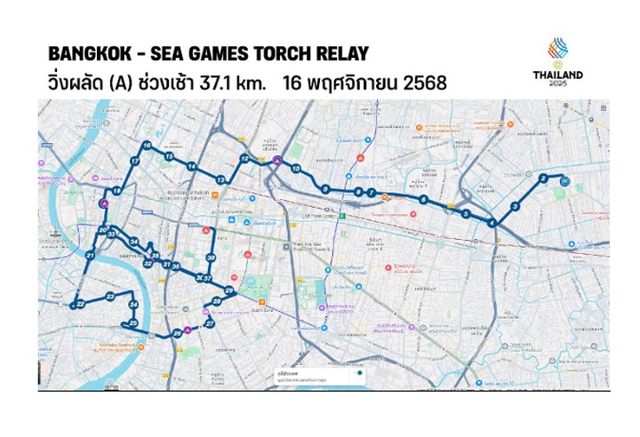 เส้นทางการวิ่ง กิจกรรมวิ่งคบเพลิงไฟพระฤกษ์ ในการจัดการแข่งขันกีฬาซีเกมส์ ครั้งที่ 33 พ.ศ.2568 และการแข่งขันกีฬาอาเซียนพาราเกมส์ ครั้งที่ 13 พ.ศ. 2568