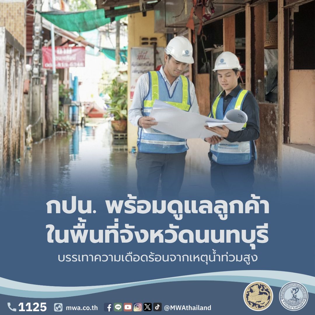 กปน. ขอส่งความห่วงใยไปยังผู้ประสบภัย และพร้อมให้ความช่วยเหลือผู้ได้รับผลกระทบจากอุทกภัยอย่างเต็มกำลัง ภายใต้นโยบาย “บำบัดทุกข์ บำรุงสุข” ของกระทรวงมหาดไทย เพื่อบรรเทาความเดือดร้อนและให้ประชาชนสามารถกลับมาใช้ชีวิตได้ตามปกติโดยเร็ว พร้อมยืนยันว่า น้ำประปาของ กปน. ยังคงสะอาด ปลอดภัย และผ่านการตรวจสอบคุณภาพอย่างสม่ำเสมอ โดยเฉพาะในพื้นที่ประสบอุทกภัย ทั้งนี้ หากต้องการแจ้งเหตุขัดข้อง สามารถติดต่อได้ที่ MWA Call Center โทร. 1125 ตลอด 24 ชั่วโมง
