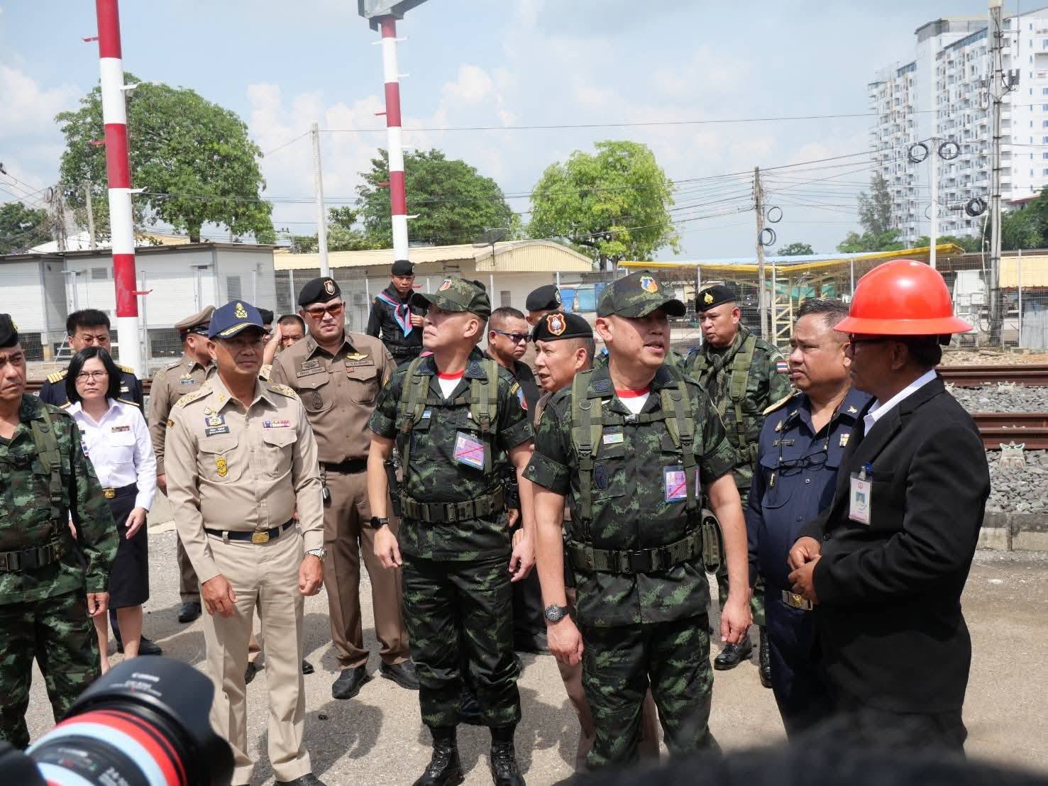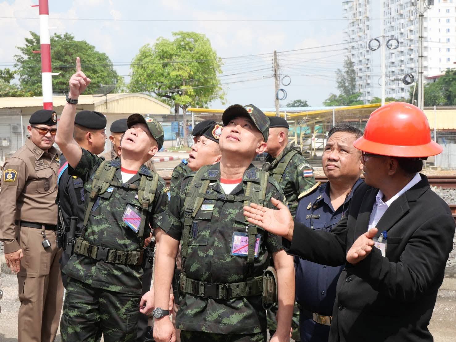ต่อมาเวลา 13.00 น. แม่ทัพภาคที่ 1 พร้อมคณะได้เดินทางไปยัง จุดผ่านแดนถาวรบ้านคลองลึก เพื่อตรวจการปฏิบัติงานของเจ้าหน้าที่ด่านศุลกากรอรัญประเทศ และเจ้าหน้าที่ตรวจคนเข้าเมืองจังหวัดสระแก้ว จากนั้นคณะได้เดินทางต่อไปยังบริเวณ สถานีรถไฟคลองลึก ซึ่งเป็นพื้นที่ที่มีการตัดกระแสไฟฟ้าและสายอินเทอร์เน็ตข้ามไปยังฝั่งกัมพูชา พร้อมรับฟังการชี้แจงการปฏิบัติงานจากเจ้าหน้าที่ไฟฟ้าอรัญประเทศ และเจ้าหน้าที่ กสทช. เขต 14