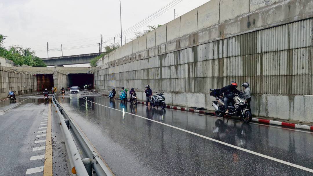 เนื่องจากมีน้ำท่วมขังทั้งสองฝั่งการจราจร จากเหตุฝนตกและถูกขโมยตัดสายไฟ ทำให้ระบบระบายน้ำไม่ทำงาน