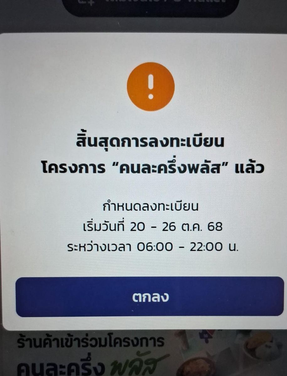 15 พฤศจิกายน 2568 เช้าวันนี้มีรายงานว่าหลายคนใช้สิทธิ์ "ระบบคนละครึ่งพลัส" ผ่านแอปพลิเคชัน 'เป๋าตัง' ไม่ได้ เนื่องจากมีปัญหา หน้าจอขึ้นข้อความ "สิ้นสุดการลงทะเบียน" ทั้งที่โครงการมีกำหนดสิ้นสุดสิ้นปี 2568 จนเป็นกระแสบ่นผ่านสื่อสังคมออนไลน์เป็นจำนวนมาก