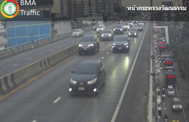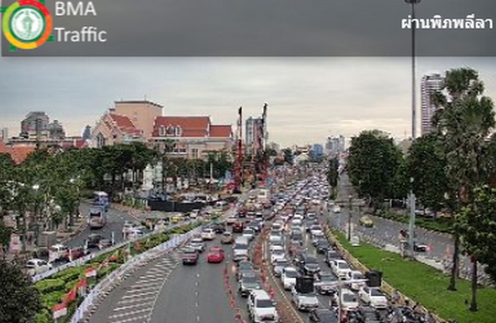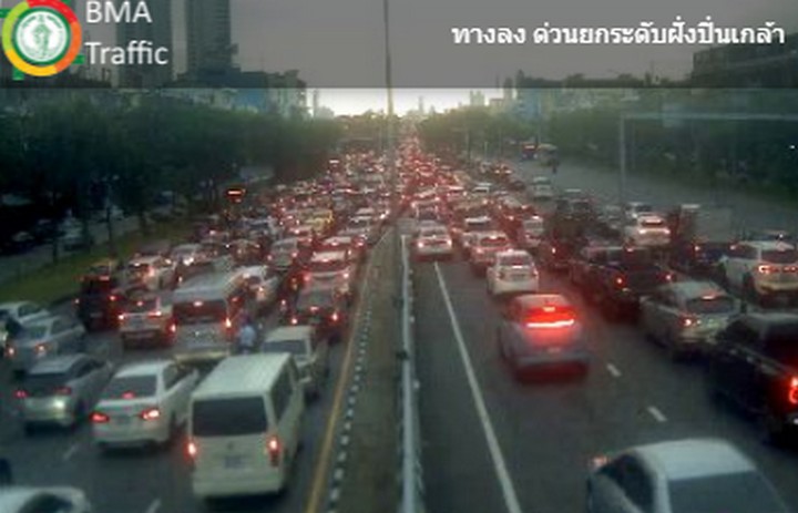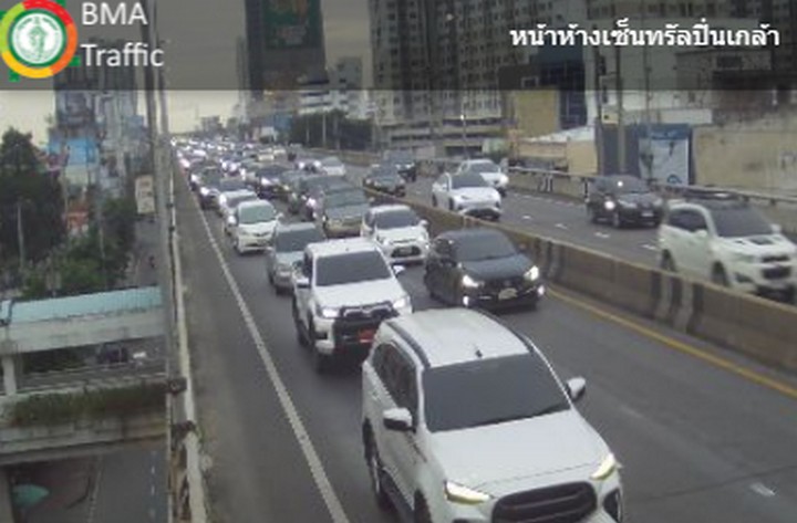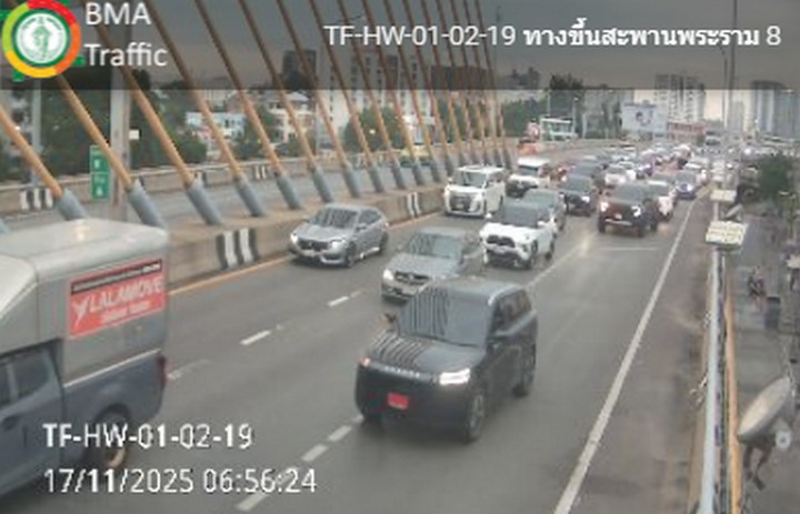 คู่ขนานลอยฟ้าบรมราชชนนี และถนนบรมราชชนนี ขาเข้า มุ่งหน้าสะพานสมเด็จพระปิ่นเกล้า เข้าแยกผ่านพิภพ ติดขัดมาก และสะพานพระราม 8 รถมาก ติดขัด