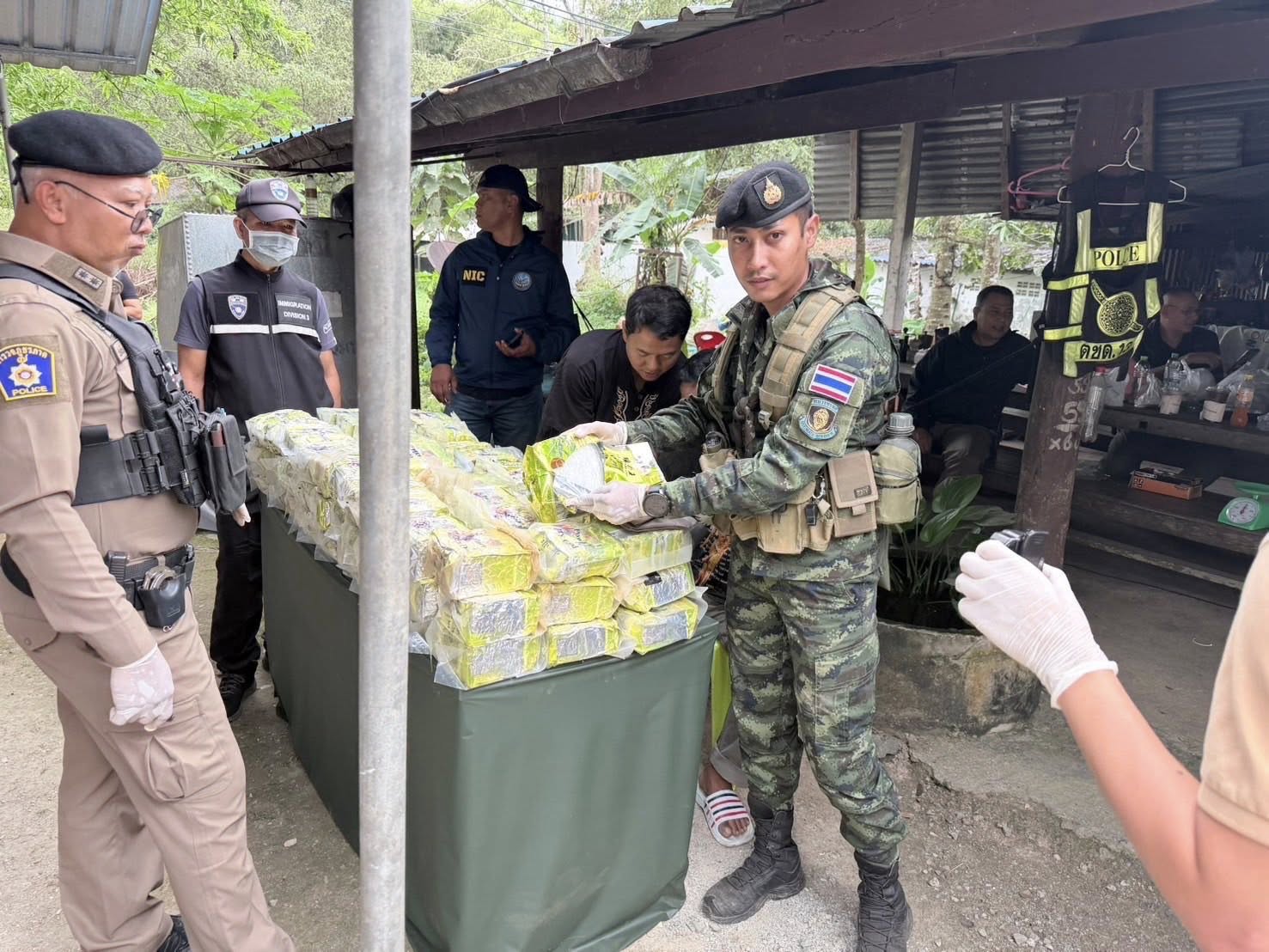 เมื่อวันที่ 17 พฤศจิกายน 2568 ฉก.ลาดหญ้า กกล.สุรสีห์ ร่วมกับฝ่ายความมั่นคงในพื้นที่ ปฏิบัติหน้าที่ ณ จุดตรวจร่วมน้ำเกริ๊ก ม.8 ต.หนองลู อ.สังขละบุรี จ.กาญจนบุรี พบชายต้องสงสัยวัย 36 ปี จากการตรวจสอบผ่านระบบเอกซเรย์แบบสะท้อนกลับ พบการดัดแปลงรถยนต์และซุกซ่อนยาเสพติดไว้ภายในตัวถังรถยนต์กระบะ เพื่อหลบเลี่ยงการตรวจพบจากเจ้าหน้าที่