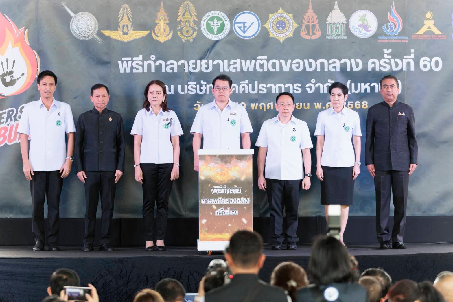 วันนี้ (19 พ.ย. 2568) เวลา 09.30 น. ณ ศูนย์บริหารจัดการวัสดุเหลือใช้อุตสาหกรรมบางปู จ.สมุทรปราการ นายสันติธร ยิ้มละมัย รองปลัดกระทรวงมหาดไทย หัวหน้ากลุ่มภารกิจด้านพัฒนาชุมชนและส่งเสริมการปกครองท้องถิ่น ได้รับมอบหมายจาก นายอรรษิษฐ์ สัมพันธรัตน์ ปลัดกระทรวงมหาดไทย ให้เข้าร่วมเป็นสักขีพยานในการเปิดปฏิบัติการ "Never Stop to Burn ทำลาย มั่นใจ ไม่เวียนขายไปทำลายสังคม" เผาทำลายยาเสพติดของกลางครั้งที่ 60 โดยมี นายพัฒนา พร้อมพัฒน์ รัฐมนตรีว่าการกระทรวงสาธารณสุข เป็นประธาน ปลัดกระทรวงสาธารณสุข เลขาธิการคณะกรรมการอาหารและยา ผู้ว่าราชการจังหวัดสมุทรปราการ พร้อมด้วยภาคีเครือข่าย อาทิ บช.ปส. ป.ป.ส. กองทัพบก กองทัพอากาศ กองทัพเรือ สำนักงานอัยการสูงสุด กรมศุลกากร กรมประชาสัมพันธ์ กรมโรงงานอุตสาหกรรม เข้าร่วม