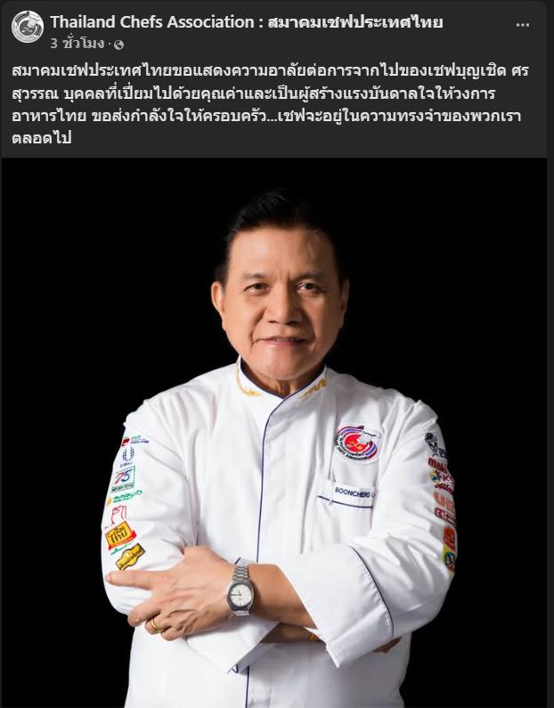 20 พฤศจิกายน 2568 เป็นข่าวเศร้าวงการอาหารของไทย เมื่อเฟซบุ๊ก Thailand Chefs Association : สมาคมเชฟประเทศไทย ได้โพสต์ข้อความสุดเศร้า ระบุว่า “สมาคมเชฟประเทศไทยขอแสดงความอาลัยต่อการจากไปของ เชฟบุญเชิด ศรสุวรรณ บุคคลที่เปี่ยมไปด้วยคุณค่าและเป็นผู้สร้างแรงบันดาลใจให้วงการอาหารไทย ขอส่งกำลังใจให้ครอบครัว เชฟจะอยู่ในความทรงจำของพวกเราตลอดไป”