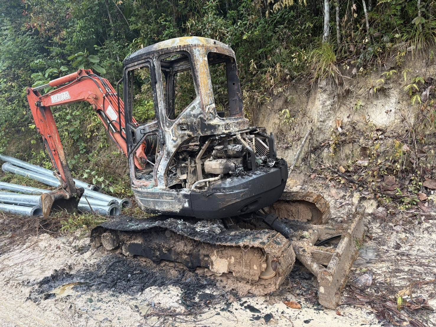คนร้ายลอบวางเพลิง เผารถแบ็คโฮ "กำนันปะแต" เสียหาย 2 คัน คาดมุ่งสร้างสถานการณ์ จ.ยะลา