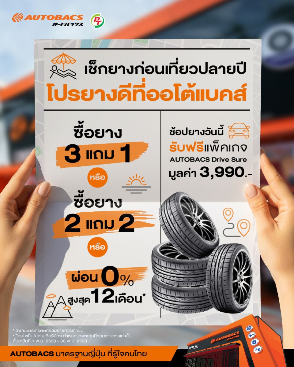 • พิเศษ ช้อปยางที่ออโต้แบคส์ รับฟรีทันที! AUTOBACS Drive Sure Package มูลค่า 3,990.-