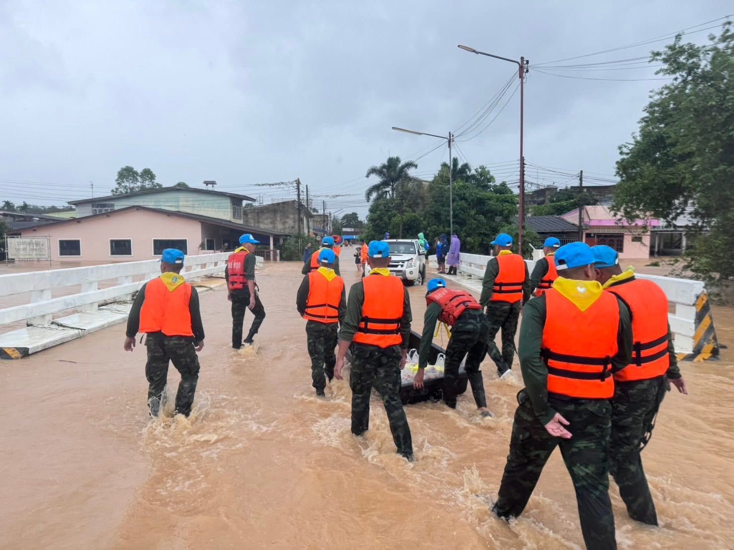 22 พ.ย. 68 กำลังพลชุดช่วยเหลือประชาชนของกองพันมณฑลทหารบกที่ 42 ลงพื้นที่ตำบลพะตง อำเภอหาดใหญ่ จังหวัดสงขลา เพื่อให้ความช่วยเหลือประชาชนที่ได้รับผลกระทบจากอุทกภัยอย่างเร่งด่วน โดยกำลังพลได้ร่วมกับองค์การบริหารส่วนตำบลและผู้นำชุมชนในพื้นที่ ช่วยขนย้ายผู้ป่วยและผู้สูงอายุ รวมทั้งสนับสนุนประชาชนในการขนย้ายสิ่งของขึ้นที่สูง พร้อมทั้งแจกจ่ายน้ำดื่มและอาหารเพื่อบรรเทาความเดือดร้อน