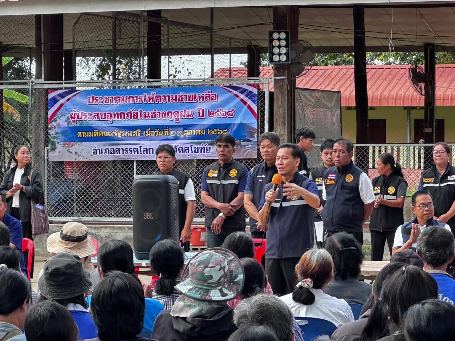 เลขานุการรัฐมนตรีว่าการกระทรวงมหาดไทย ลงพื้นที่รับฟังความคิดเห็นประชาชน อ.สวรรคโลก จ.สุโขทัย เกี่ยวกับการจ่ายเงินผู้ได้รับผลกระทบจากกรณีน้ำท่วมขังเป็นเวลานานในช่วงฤดูฝน