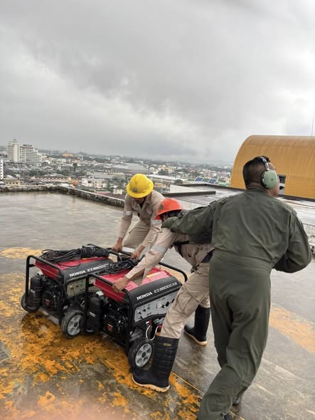 วันที่ 26 พฤศจิกายน 2568 เวลา 06.30 น. ทัพเรือภาคที่ 2 ใช้อากาศยาน ฮ.ลล.4 (S-76B) ส่งเครื่องกำเนิดไฟฟ้า (Generator) จำนวน 2 เครื่อง จากการสนับสนุนของการไฟฟ้าส่วนภูมิภาค (PEA) ถึงโรงพยาบาลหาดใหญ่ เพื่อให้สามารถผลิตไฟฟ้าและดูแลรักษาผู้ป่วยได้อย่างต่อเนื่อง