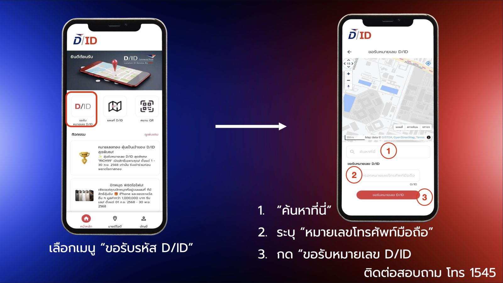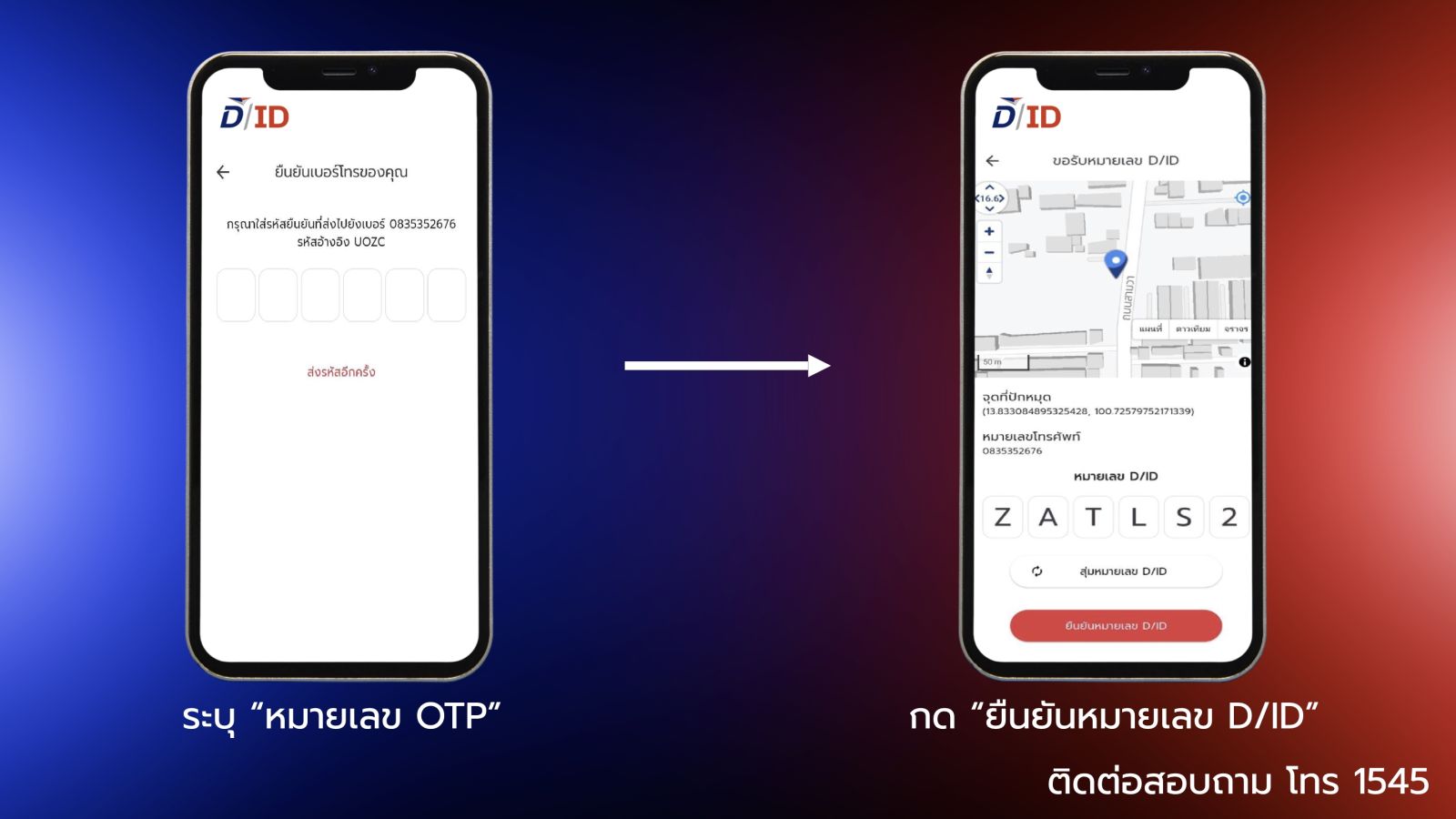 โดยสามารถดาวน์โหลดแอปพลิเคชัน D/ID ได้ฟรี ผ่านระบบ iOS และ Android สำหรับขั้นตอนการใช้งานคือ 1. เลือกเมนู ขอรับรหัส D/ID และกรอกหมายเลขโทรศัพท์เพื่อรับรหัส OTP จากนั้นยืนยันเข้าสู่ระบบเพื่อไปยังหน้าแผนที่ 2. กดปักหมุดตำแหน่งปัจจุบัน เพื่อระบุจุดที่ต้องการขอความช่วยเหลือ พร้อมกรอกรายละเอียดของผู้ประสบภัยตามความจำเป็น เช่น จำนวนผู้ประสบภัย ข้อมูลสำคัญภายในพื้นที่หรือมีผู้ป่วยวิกฤตหรือไม่ พร้อมบันทึกข้อมูลให้เรียบร้อย จะได้รับรหัส D/ID แบบ 6 หลัก และ QR Code ซึ่งไปรษณีย์ไทยจะรวบรวมข้อมูลพิกัดที่ประชาชนแจ้งผ่านระบบ D/ID และส่งต่อไปยังหน่วยงานด้านภัยพิบัติและท้องถิ่นในการวางแผนเข้าพื้นที่อย่างมีประสิทธิภาพต่อไป