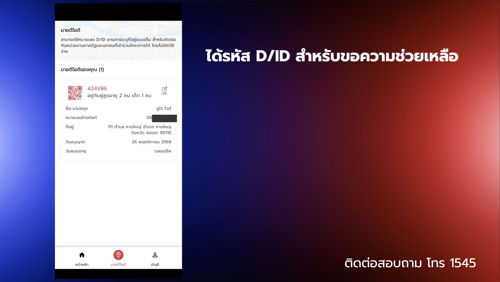 กรุงเทพฯ 26 พฤศจิกายน 2568 — บริษัท ไปรษณีย์ไทย จำกัด นำระบบ “ดี/ไอดี (D/ID : Digital Post ID)” สนับสนุนการช่วยเหลือประชาชนที่ประสบปัญหาอุทกภัยในพื้นที่หลายจังหวัดของภาคใต้ ในการระบุพิกัดได้อย่างละเอียดทั้งแนวราบและแนวดิ่ง โดยระบบนี้สามารถค้นหาผู้ประสบภัยอย่างแม่นยำ และเพิ่มประสิทธิภาพให้ทีมกู้ภัยสามารถเข้าถึงพื้นที่วิกฤตได้รวดเร็วยิ่งขึ้น โดยเปิดให้ประชาชนสามารถปักหมุดเพื่อแจ้งจุดที่ต้องการ ความช่วยเหลือได้ทันทีผ่านแอปพลิเคชัน D/ID