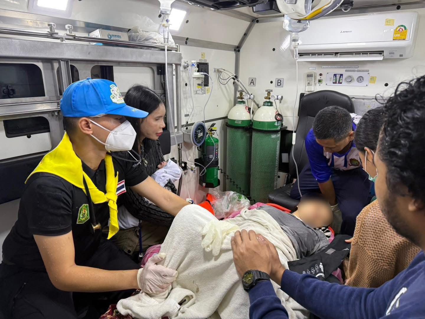 ระหว่างลำเลียงส่งโรงพยาบาลเทพา ด้วยรถพยาบาลทหาร M51 เจ้าหน้าที่ต้องช่วยกู้ชีพตลอดทาง บางช่วงต้องลัดเลาะเส้นทางสูงและฝ่าฝนหนัก แต่สุดท้ายสามารถนำแม่และทารกถึงมือแพทย์อย่างปลอดภัย