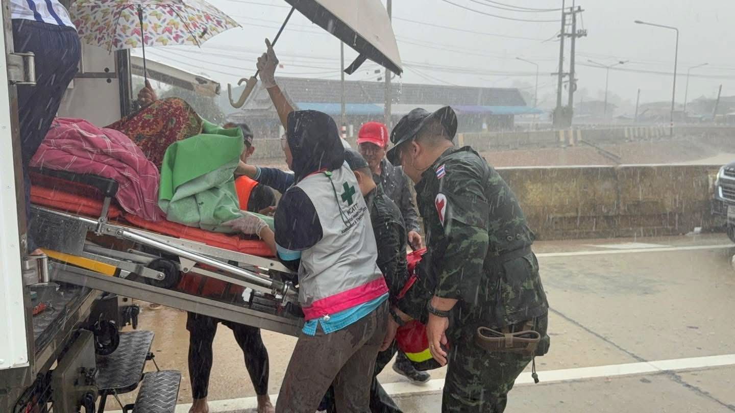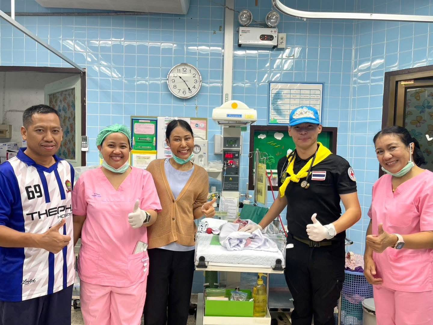 ท่ามกลางฝนที่เทกระหน่ำ เจ้าหน้าที่ กองพันเสนารักษ์ กรมสนับสนุน กองพลทหารราบที่ 15 พร้อม เครือข่ายวิชาชีพสาธารณสุข PCU พระพุทธ ระดมกำลังเข้าช่วยเหลือเร่งด่วน ทำคลอดฉุกเฉินกลางถนนในรถพยาบาล ก่อนเร่งให้สารน้ำและยาควบคุมการบีบตัวของมดลูกเพื่อหยุดการตกเลือด