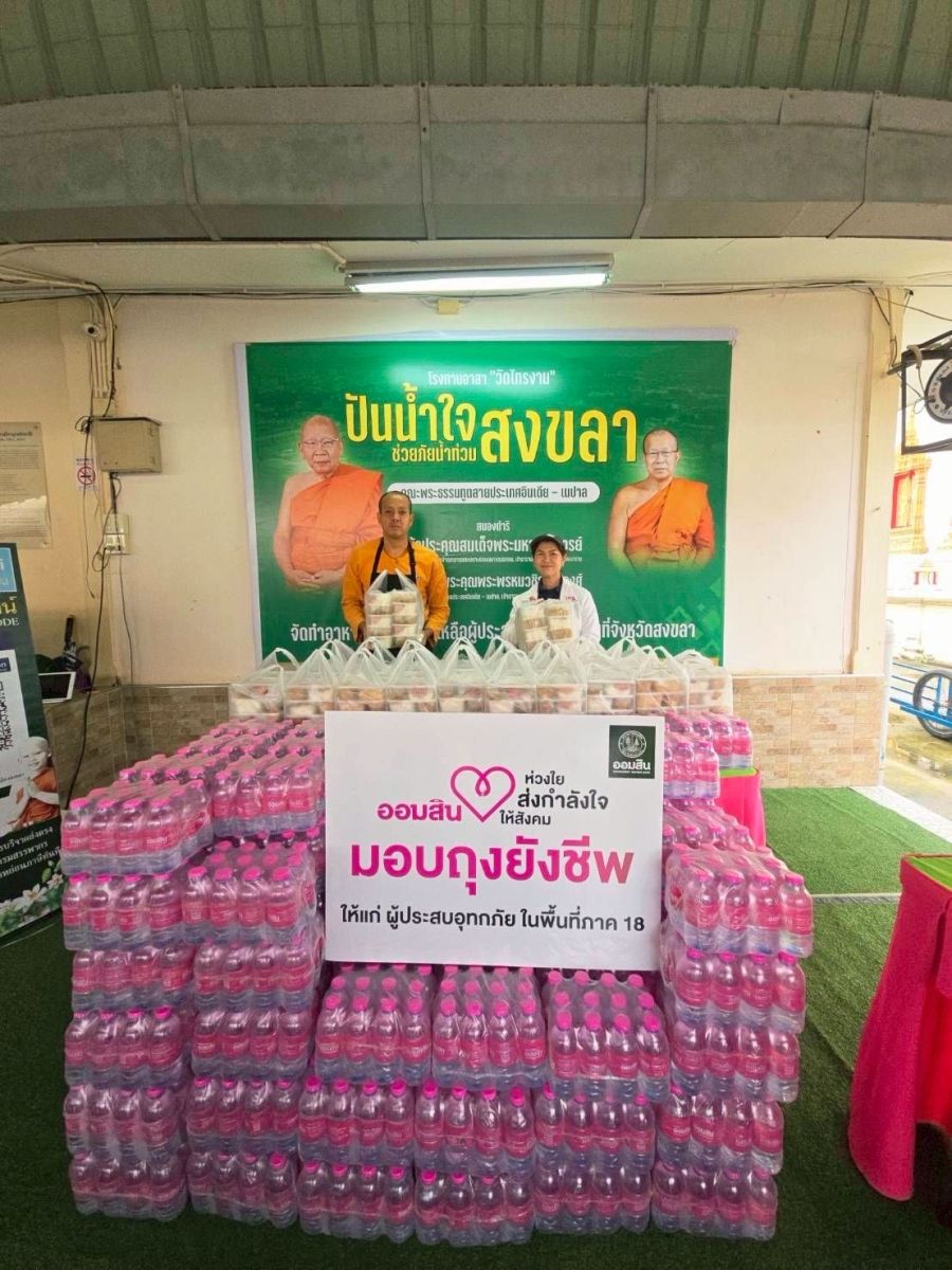 นางลภาวรรณ จันทร์กระจ่าง รองผู้อํานวยการธนาคารออมสิน รักษาการผู้อํานวยการธนาคารออมสิน เปิดเผยว่า ท่ามกลางสถานการณ์อุทกภัยในพื้นที่ภาคใต้ ธนาคารออมสินขานรับนโยบายรัฐและกระทรวงการคลัง ระดมความช่วยเหลือพร้อมทีมสนับสนุนลงพื้นที่อย่างต่อเนื่อง ได้จัดสรรงบประมาณรวมแล้วกว่า 5.5 ล้านบาท โดยเฉพาะอําเภอหาดใหญ่ จังหวัดสงขลา ที่ได้รับผลกระทบรุนแรง จึงเร่งให้ความช่วยเหลือในทุกมิติ ตั้งแต่การตั้ง “โรงครัวออมสิน” ณ มหาวิทยาลัยราชภัฏสงขลา ซึ่งเป็นศูนย์พักพิงชั่วคราวที่มีผู้ประสบอุทกภัยจํานวนมาก และมีปริมาณอาหารที่ไม่เพียงพอ แต่มีความพร้อมทั้งด้านบุคลากรและอุปกรณ์ในการประกอบอาหาร และเทศบาลเมืองควนลัง ด้วยการสนับสนุนวัตถุดิบสําหรับการประกอบอาหาร เพื่อเพิ่มกําลังการผลิต อาหารปรุงสุกให้เพียงพอ ซึ่งเป็นความจําเป็นเร่งด่วนที่สุด พร้อมสนับสนุนเรือท้องแบน จํานวน 2 ลํา มูลค่า 1 ล้านบาท โดยร่วมกับ บริษัท ซีทโบ๊ต จํากัด และเสื้อชูชีพ ส่งมอบให้สํานักงานป้องกันและบรรเทา สาธารณภัยจังหวัดสงขลา (ปภ.) ใช้ในการขนส่งอาหาร น้ําดื่ม ถุงยังชีพ สิ่งของบรรเทาทุกข์และนําผู้ประสบภัย ออกจากบ้านเรือนที่ถูกตัดขาดจากเส้นทางปกติ พร้อมส่งมอบถุงยังชีพและอาหารปรุงสุก