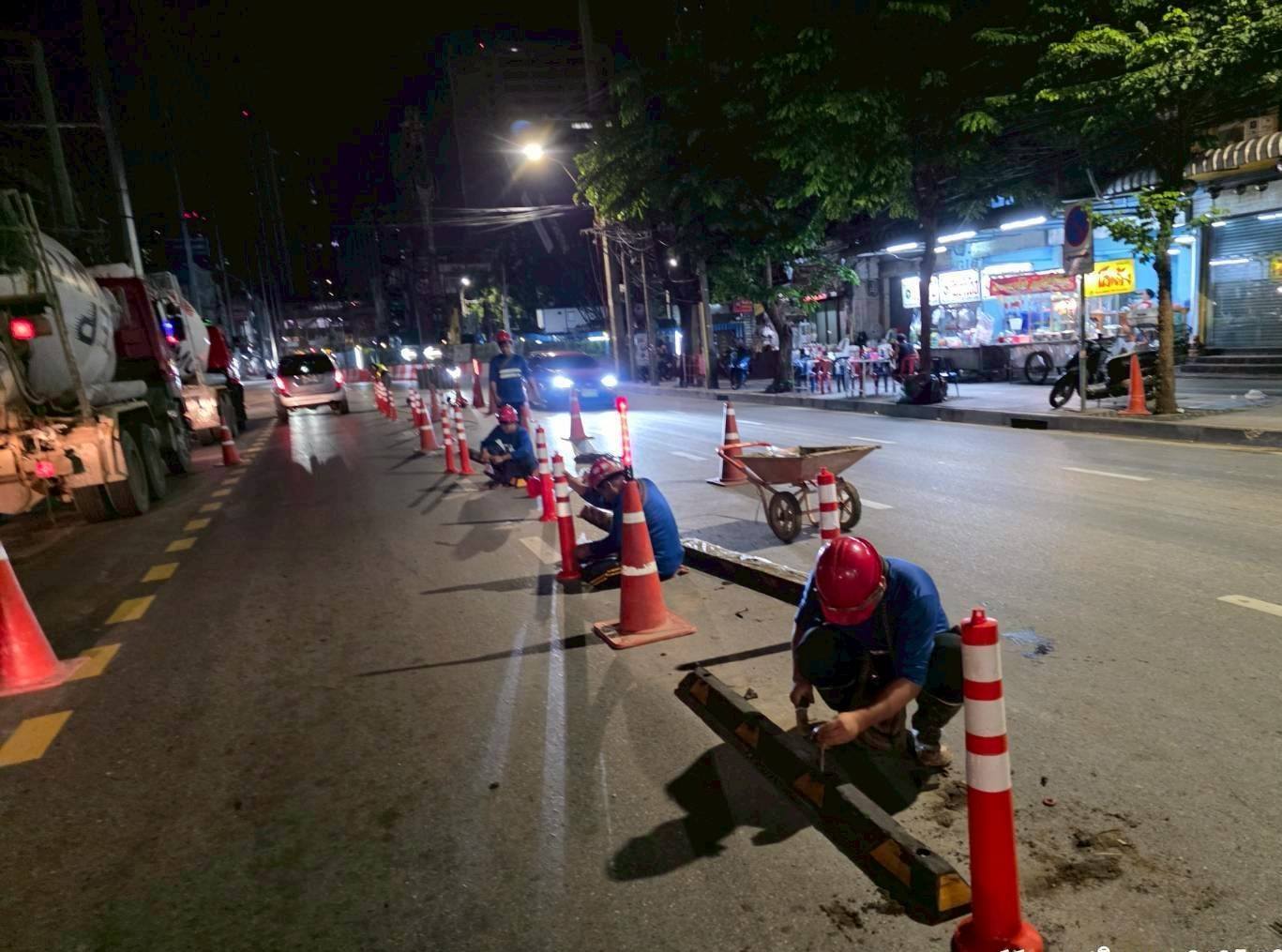 โดยในการลงพื้นที่ครั้งนี้ รฟม. ได้ตรวจสอบการปฏิบัติตามมาตรการป้องกันและแก้ไขผลกระทบสิ่งแวดล้อมในช่วงเวลากลางคืน ตามที่กำหนดไว้ในรายงานการประเมินผลกระทบสิ่งแวดล้อม (EIA) เช่น การปิดคลุมกองดิน กองทราย และเศษวัสดุก่อสร้าง ที่ก่อให้เกิดฝุ่นละอองในระหว่างรอการใช้งานหรือรอการขนย้าย การจัดเก็บขยะ การทำความสะอาดล้อรถก่อนนำรถออกจากพื้นที่ก่อสร้าง รวมถึงทำความสะอาดพื้นที่ก่อสร้างและถนนสาธารณะ การปิดคลุมรถที่ใช้ขนส่งวัสดุก่อสร้างด้วยผ้าใบ เพื่อกันวัสดุตกหล่นและป้องกันการฟุ้งกระจายของฝุ่นละออง การติดตั้งรั้วทึบสูง 2 เมตร และการติดตั้งไฟส่องสว่าง สัญญาณไฟบนรั้วตามแนวพื้นที่ก่อสร้าง การป้องกันน้ำมันรั่วไหลจากเครื่องจักร การฉีดพรมน้ำเพื่อลดการฟุ้งกระจายของฝุ่นละออง การจัดทำทางเดินเท้าชั่วคราวทดแทนทางเดินเท้าเดิมให้มีความปลอดภัย พร้อมป้ายแจ้งบอกแนวเส้นทางเดินเท้า และจัดให้มีเจ้าหน้าที่โครงการฯ คอยอำนวยความสะดวกให้กับประชาชนผู้ใช้เส้นทางในระหว่างที่มีการก่อสร้าง พร้อมกำชับเรื่องการสวมใส่อุปกรณ์คุ้มครองความปลอดภัยส่วนบุคคลตลอดระยะเวลาที่ปฏิบัติงาน และเน้นย้ำให้เจ้าหน้าที่ทุกคนปฏิบัติตามมาตรการป้องกันและแก้ไขผลกระทบสิ่งแวดล้อมอย่างเคร่งครัดต่อไป