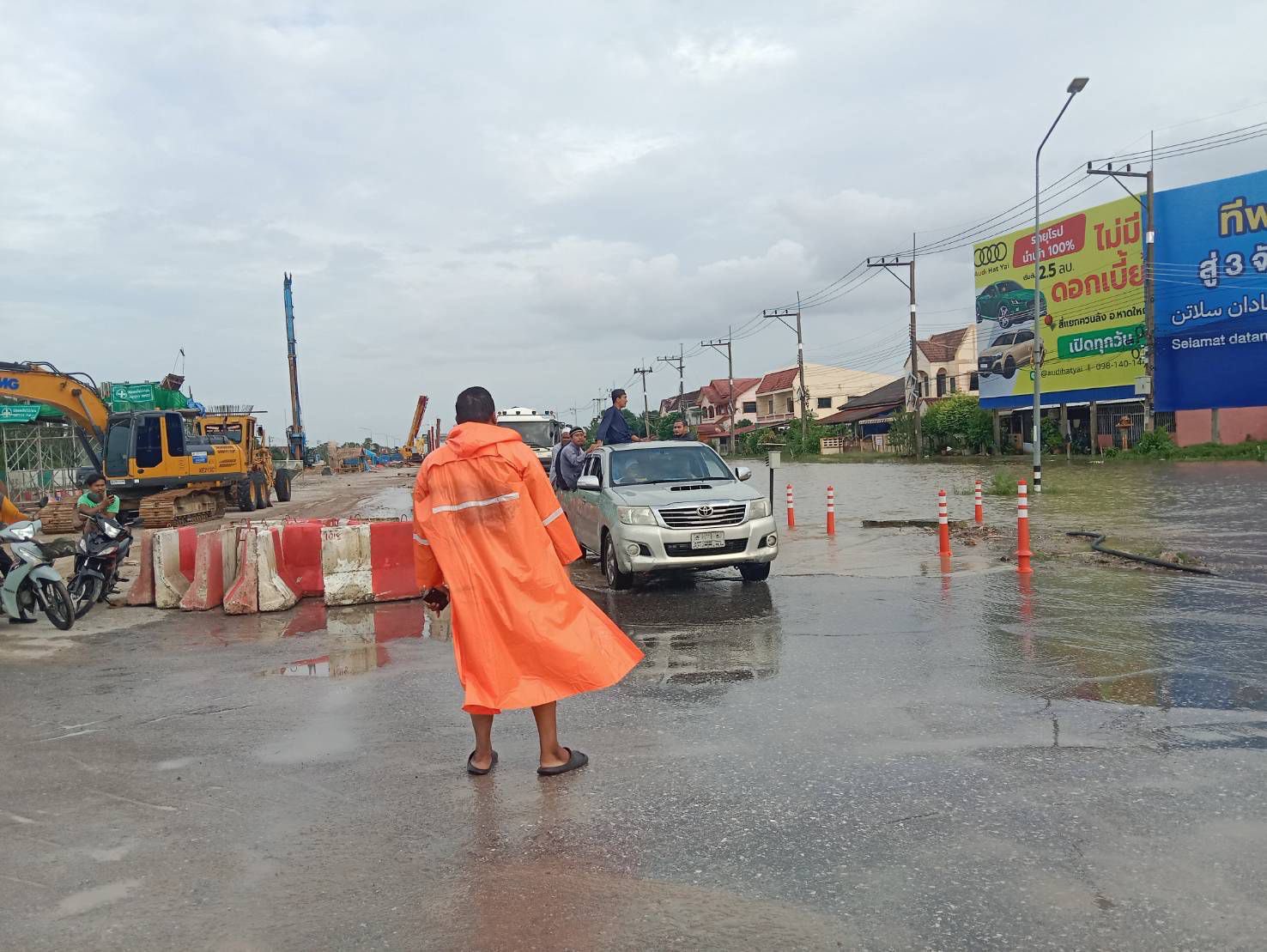 - ตรวจสอบสภาพน้ำถนนสาย42 ฝั่งขาเข้าตลาดบ่อทองเส้นทางยังคงมีระดับน้ำท่วมอยู่ รถเล็กยังไม่สามารถสัญจรผ่านได้ เว้นรถกระบะและรถบรรทุกสามารถสัญจรได้โดยใช้ความระมัดระวัง