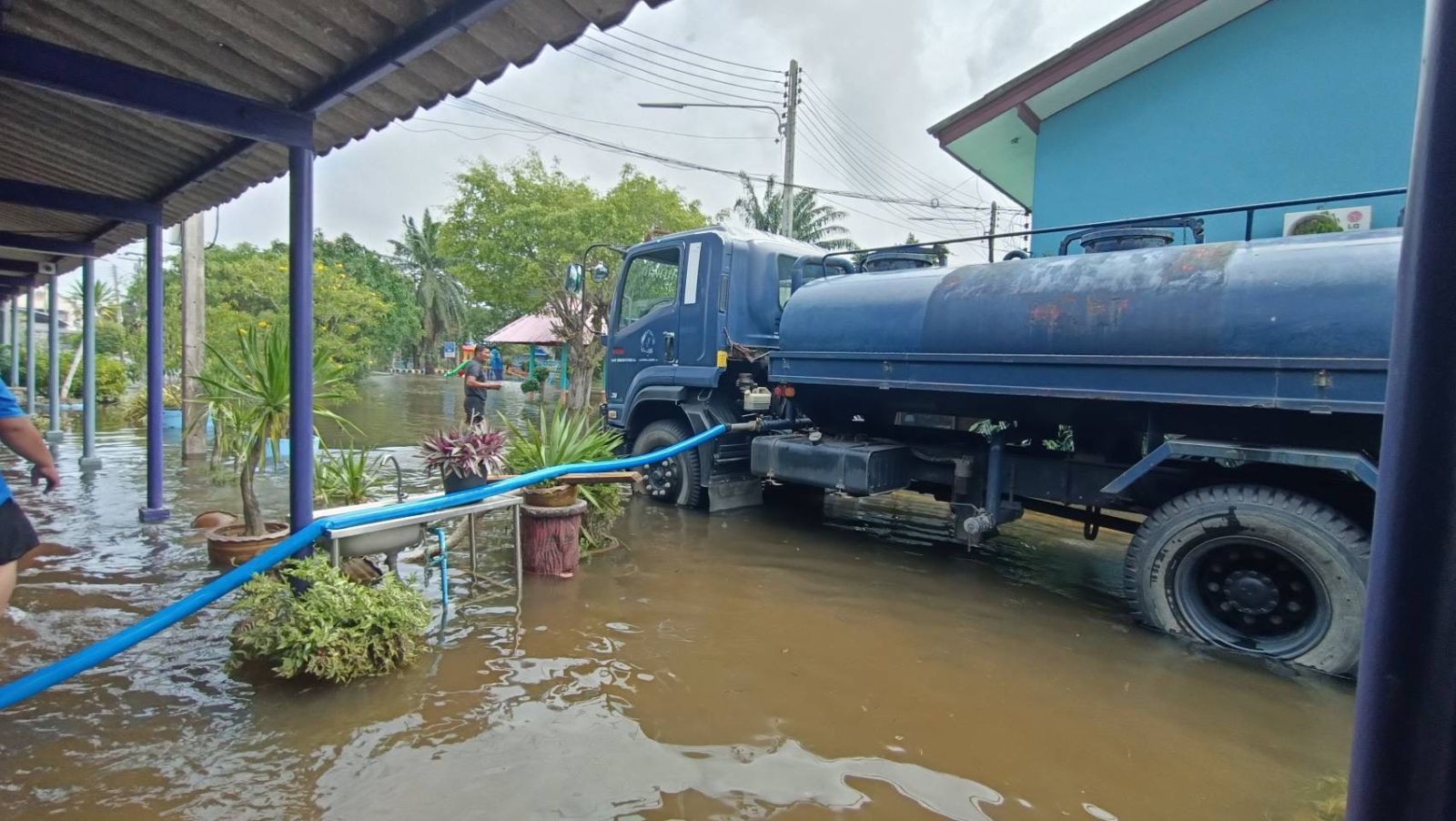 รถผลิตน้ำดื่มสะอาดระบบ RO มีกำลังการผลิต 500 ลิตรต่อชั่วโมง จะตั้งจุดผลิตและแจกจ่ายน้ำดื่มให้ประชาชนในพื้นที่จนกว่าสถานการณ์จะคลี่คลาย ขณะเดียวกันรถบรรทุกน้ำจะทำหน้าที่ลำเลียงน้ำดิบเข้าสู่ระบบผลิตน้ำสะอาด รวมถึงนำน้ำบาดาลไปช่วยแจกจ่ายในพื้นที่ขาดแคลนน้ำใช้ และบางส่วนจะใช้สนับสนุนการฉีดล้างทำความสะอาดบ้านเรือนและสถานที่ต่าง ๆ หลังน้ำลด