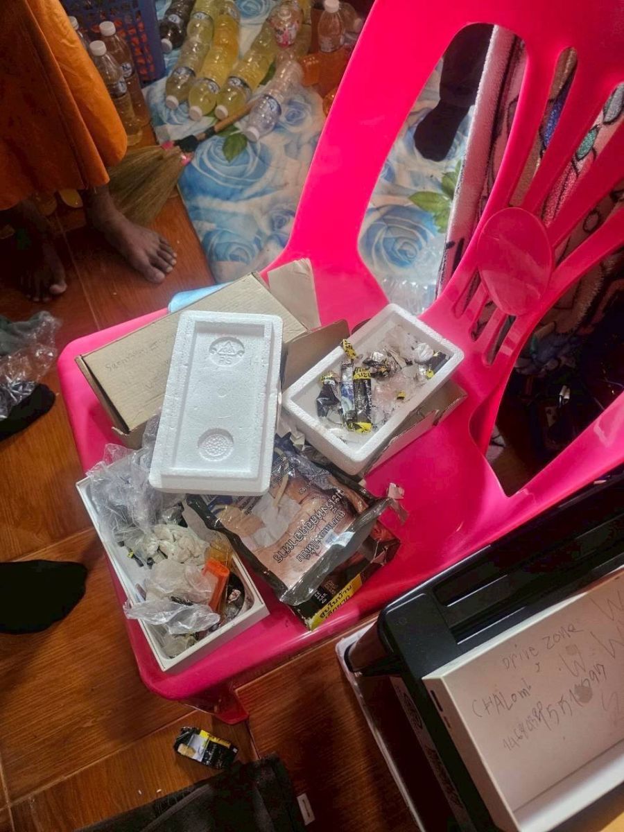จากนั้น เจ้าหน้าที่ได้ให้พระทั้ง 3 รูป นำตรวจค้นภายในกุฏิของตนเอง พบยาบ้า 3 เม็ด ซุกซ่อนอยู่ใต้ที่นอนของพระรูปหนึ่ง ส่วนกุฏิของพระสงฆ์อีก 2 รูปไม่พบสิ่งผิดกฎหมายเพิ่มเติม นอกจากนี้ยังตรวจพบเครื่องกระสุนปืน จำนวน 6 นัด ซึ่งเป็นของพระลูกวัดอีก 1 รูป