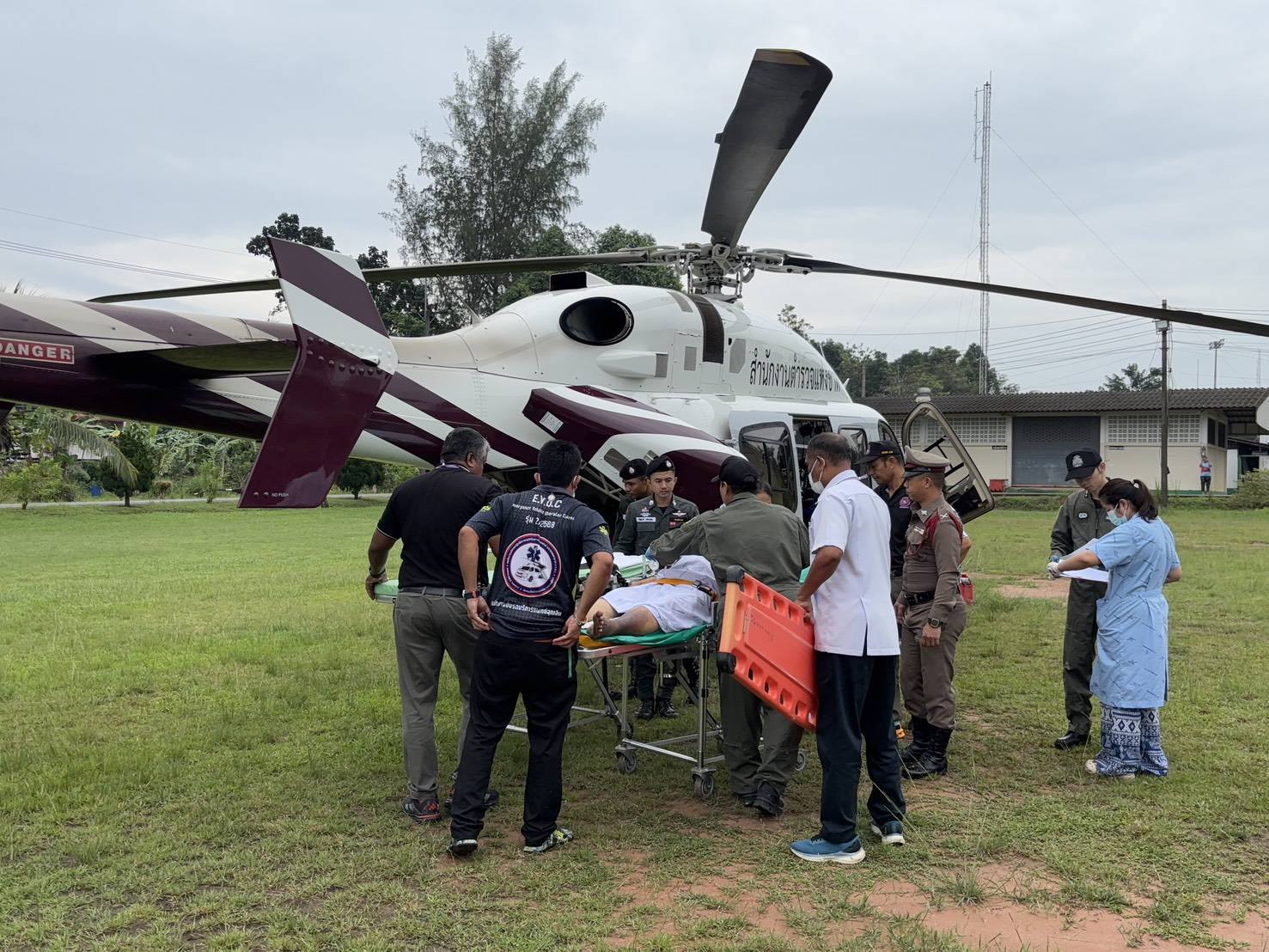 ศูนย์ส่งกลับและรถพยาบาล โรงพยาบาลตำรวจ ลำเลียงผู้ป่วยทางอากาศยาน จากโรงพยาบาลหาดใหญ่ ไปยัง มทบ.42 และ ลำเลียงเวชภัณฑ์ ออกซิเจนไปยังโรงพยาบาลปัตตานี ช่วยเหลือผู้ป่วย