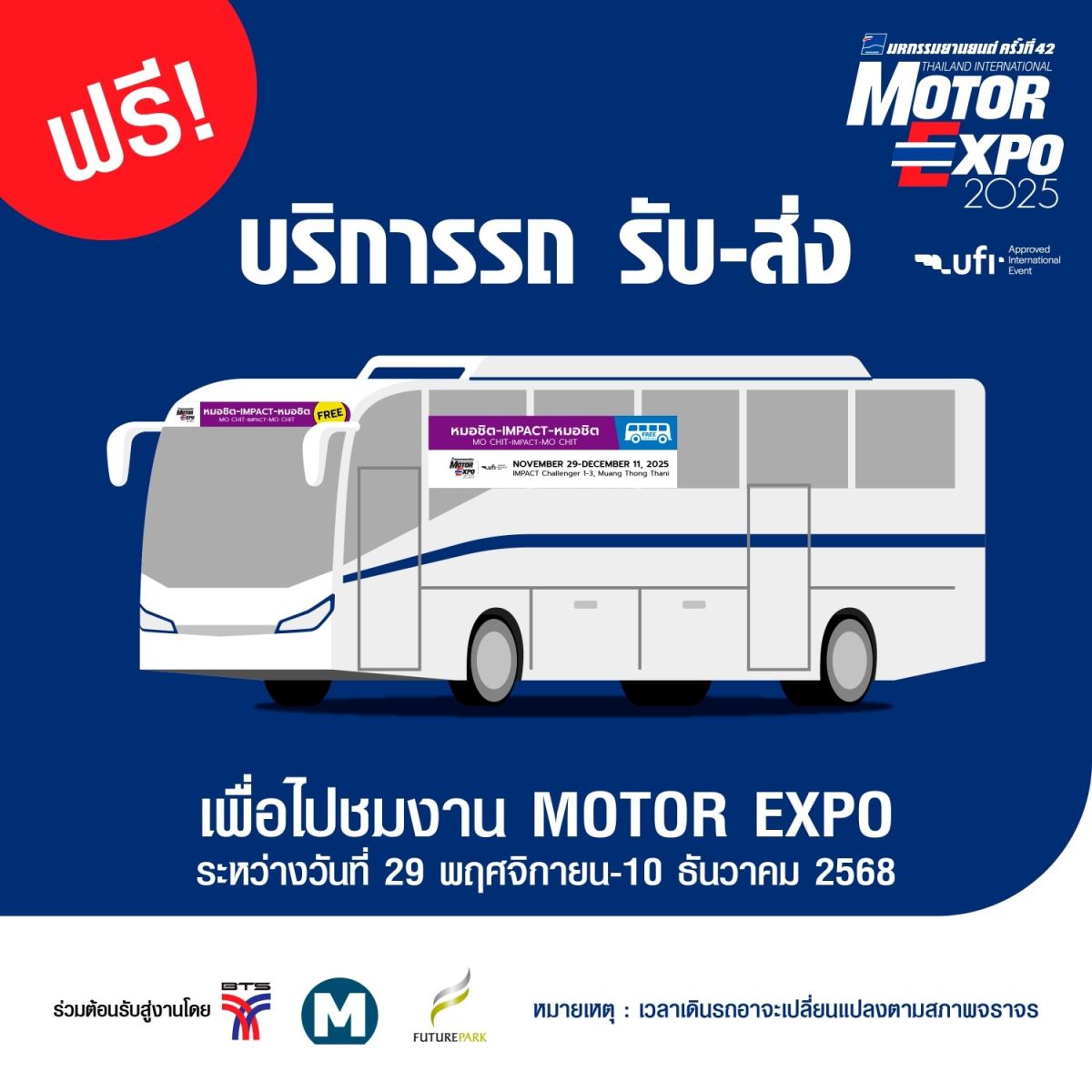 ฟรี! บริการรถ รับ-ส่ง เพื่อไปชมงาน Motor Expo 2025 ระหว่างวันที่ 29 พฤศจิกายน - 10 ธันวาคม 2568