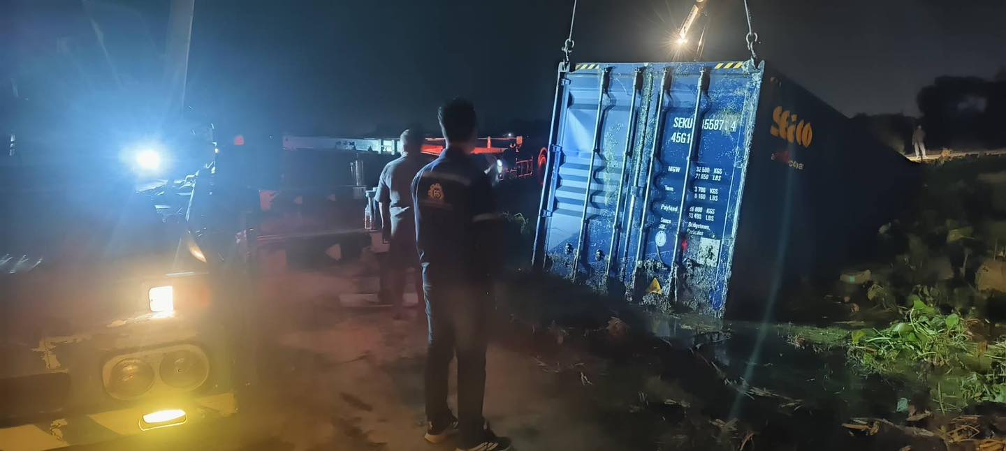 เมื่อกลางดึก วันที่ 29 พ.ย. นายจิตรติ รามเนตร ปลัดอาวุโส รษท.นายอำเภอเมือง นำกำลัง ฝ่ายปกครอง ปภ. และ หน่วยEOD ไปตรวจสอบ หลังมีรถบรรทุก ตัวเทรลเลอร์ที่บรรทุกตู้คอนเทนเนอร์ ตกไปในคูส่งน้ำ ซอยข้างสถานพินิจ อ.เมืองสุพรรณบุรี ซึ่งทุกฝ่าย ได้เฝ้าระวังโดยผู้ประกอบการได้นำรถเครนมากู้รถขึ้น
