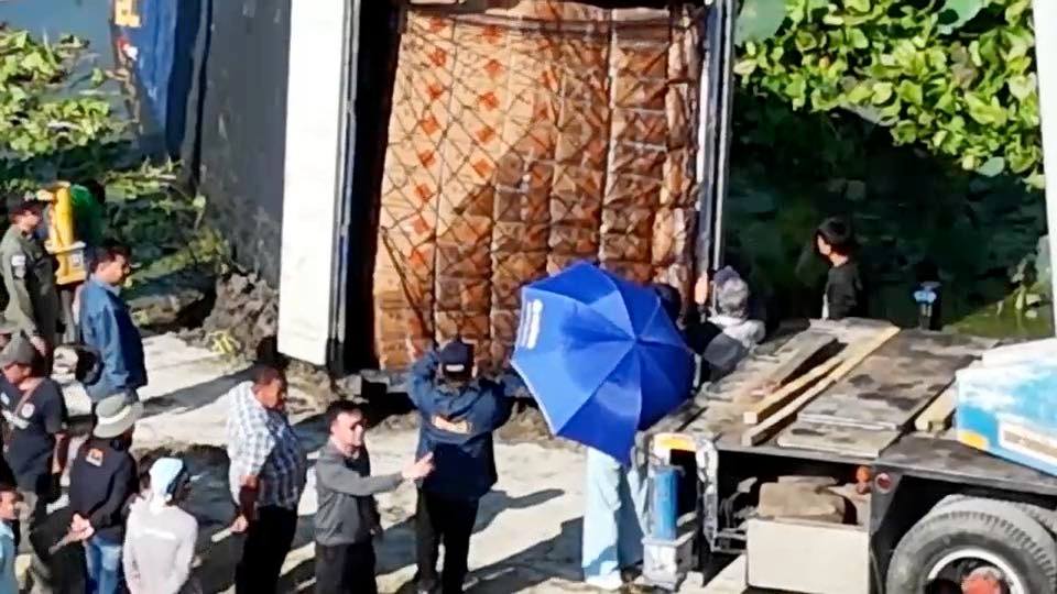 ซึ่งรถบรรทุกเทรลเลอร์คันนี้ ตอนแรกต้องนำพลุ ประทัด ดอกไม้ไฟ กว่า 25 ตัน ไปส่งที่สงขลา ตู้คอนเทนเนอร์มาขึ้นที่ท่าเรือแหลมฉบัง แต่ไปส่งที่สงขลาไม่ได้เพราะปัญหาน้ำท่วม จึงจะนำมาฝากที่โกดังเก็บดอกไม้เพลิงในพื้นที่สุพรรณบุรี ที่ขออนุญาติถูกต้อง แต่ปรากฏคนขับ ไม่ชินเส้นทาง เปิดGPS เข้าซอยแคบ จนตัวหางเทรลเลอร์ ตกลงไปในน้ำ จนเช้ามาเร่งกู้ แล้ขนย้ายพลุ ดอกไม้ไฟออกไป และ กู้รถขึ้นมาได้