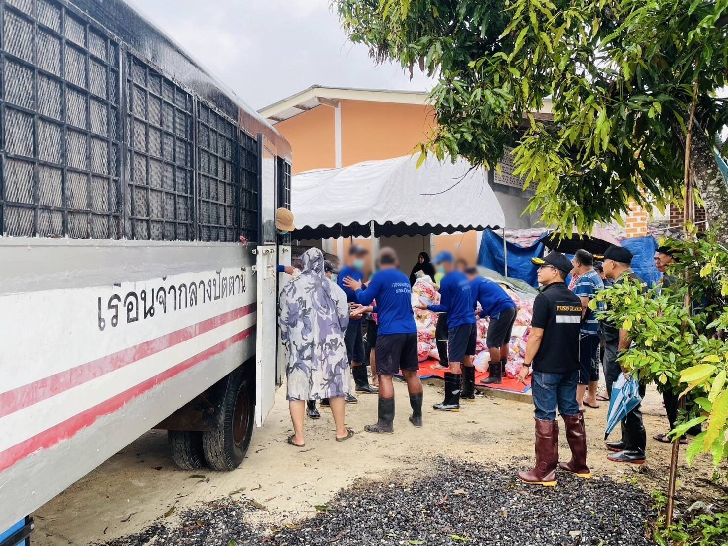เรือนจำกลางปัตตานี นำโดย นายศรชัย ตลาสุข ผู้บัญชาการเรือนจำกลางยะลา รักษาราชการแทน ผู้บัญชาการเรือนจำกลางปัตตานี นำคณะเจ้าหน้าที่ราชทัณฑ์และผู้ต้องราชทัณฑ์ชั้นดี พร้อมรถบรรทุกหกล้อ จำนวน 2 คัน ร่วมกับองค์การบริหารส่วนตำบลตะลุโบะ ภายใต้การนำของนายณกร คงคาลิหมีน ปลัด อบต.ตะลุโบะ ร่วมแรงร่วมใจกันขนถ่าย บรรทุกถุงยังชีพพร้อมน้ำดื่มเพื่อส่งมอบให้แก่ผู้ประสบภัยตามหมู่บ้านต่างๆ ในพื้นที่ ต.ตะลุโบะ อ.เมือง จ.ปัตตานี ซึ่งเป็นหนึ่งในพื้นที่ที่ได้รับผลกระทบเพื่อให้การความช่วยเหลือถึงมือผู้ประสบภัยอย่างทั่วถึง