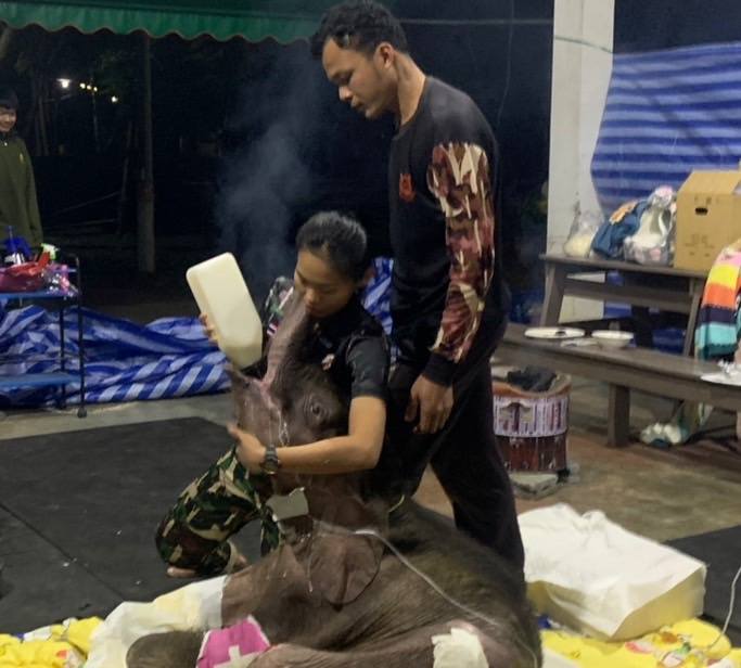 อัปเดตข้าวต้ม ลูกช้างป่าอาการดีขึ้นต่อเนื่อง ร่าเริงมีแรง กินนมได้มากขึ้น ทีมสัตวแพทย์ดูแลตลอด 24 ชั่วโมง