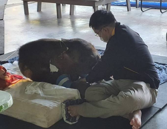 ที่น่ายินดีคือไม่พบภาวะน้ำตาลต่ำในทุกช่วงเวลาที่ตรวจ และที่สำคัญน้องข้าวต้มมีพฤติกรรมร่าเริงกว่าเดิม มีกำลังเพิ่มขึ้น และแสดงความสนใจต่อพี่เลี้ยงและสิ่งแวดล้อมมากขึ้น ทีมสัตวแพทย์ได้ให้การรักษาอย่างรอบด้าน ประกอบด้วย การให้สารน้ำทางหลอดเลือดดำเพื่อป้องกันภาวะขาดน้ำและพยุงระดับน้ำตาลในเลือด การให้วิตามินบำรุงร่างกาย ยาบำรุงตับ รวมถึงยาลดปวดเกร็งท้องเมื่อมีอาการ นอกจากนี้ ยังมีการรักษาแผลและแผลกดทับบริเวณผิวหนังอย่างต่อเนื่อง โดยทำความสะอาดแผล พ่นยาและทายา รวมทั้งใช้เทคโนโลยีเลเซอร์ช่วยรักษาแผลกดทับ