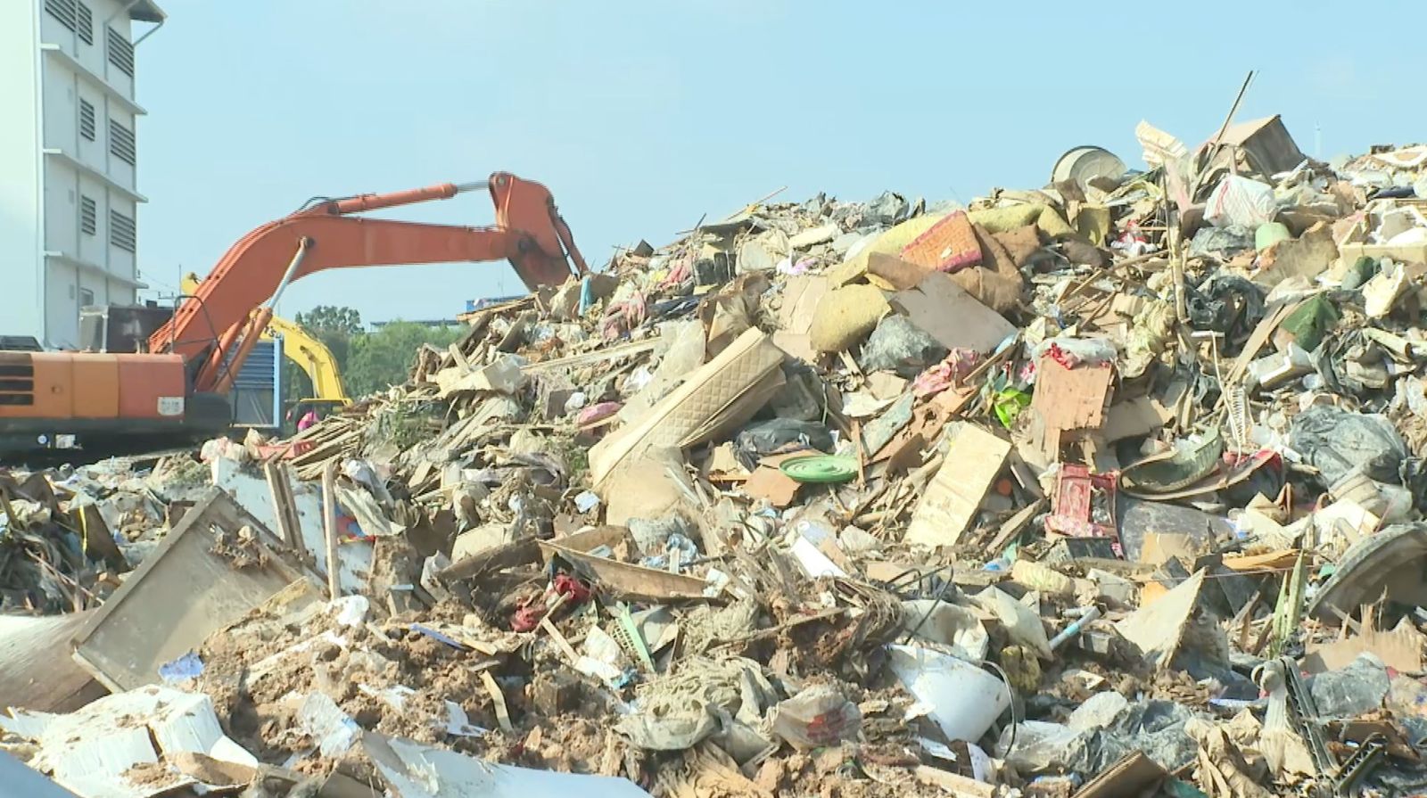 เจ้าหน้าที่ใช้รถแบ็กโฮเล็กตักขยะขึ้นรถบรรทุก 6 ล้อเล็กจากพื้นที่ชุมชนต่าง ๆ นำมารวมยังจุดพัก ก่อนที่รถแบ็กโฮขนาดใหญ่จะทำการโกยและจัดเรียงเป็นกองขนาดใหญ่ จากนั้นรถบรรทุกสิบล้อจะรับช่วงขนย้ายมุ่งหน้าไปยังบ่อฝังกลบของเทศบาลนครหาดใหญ่ เพื่อเร่งลดปริมาณขยะสะสม เนื่องจากขยะเริ่มส่งกลิ่นเหม็นและอาจก่อปัญหาด้านสุขอนามัยหากปล่อยทิ้งไว้นาน