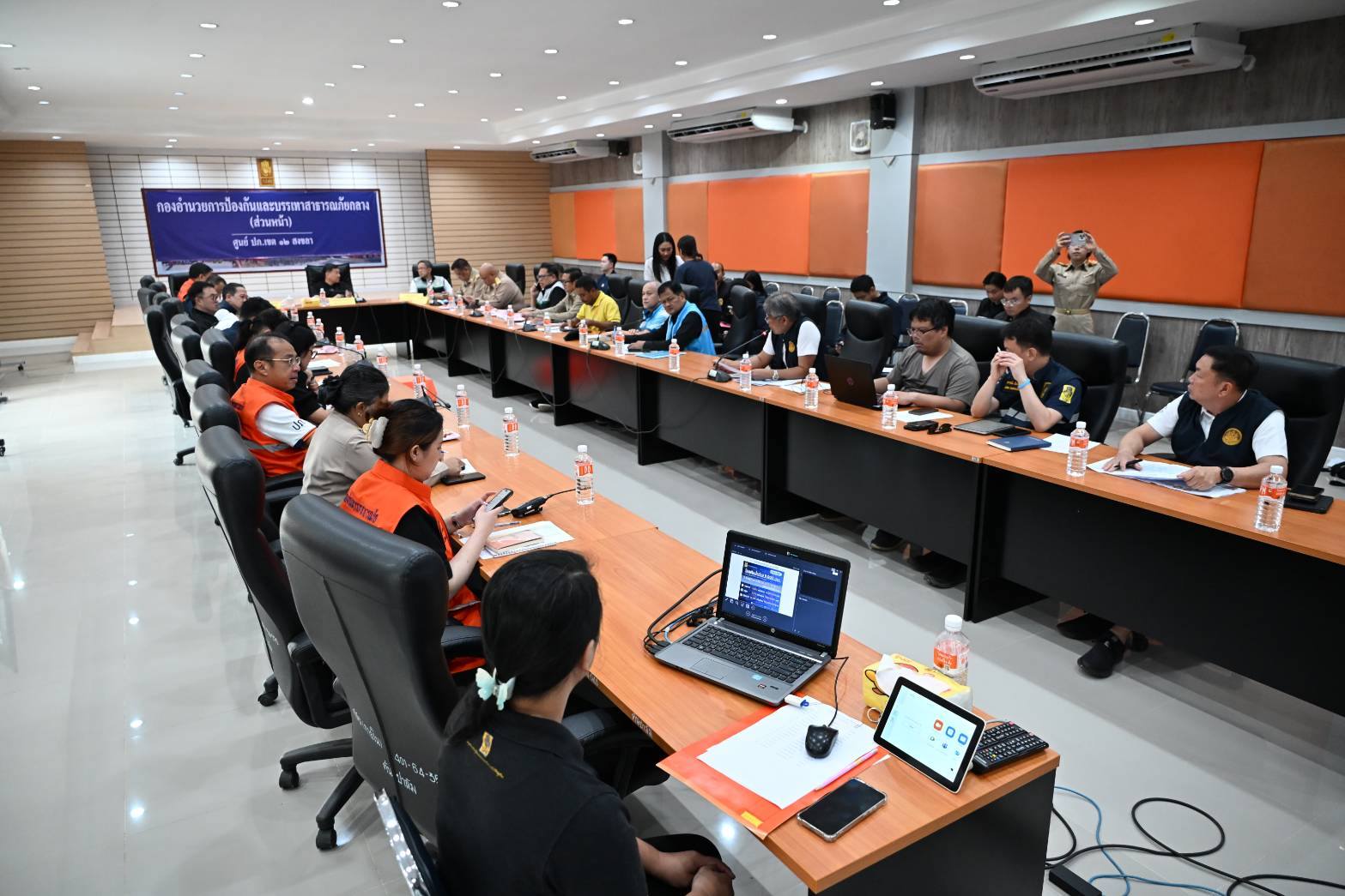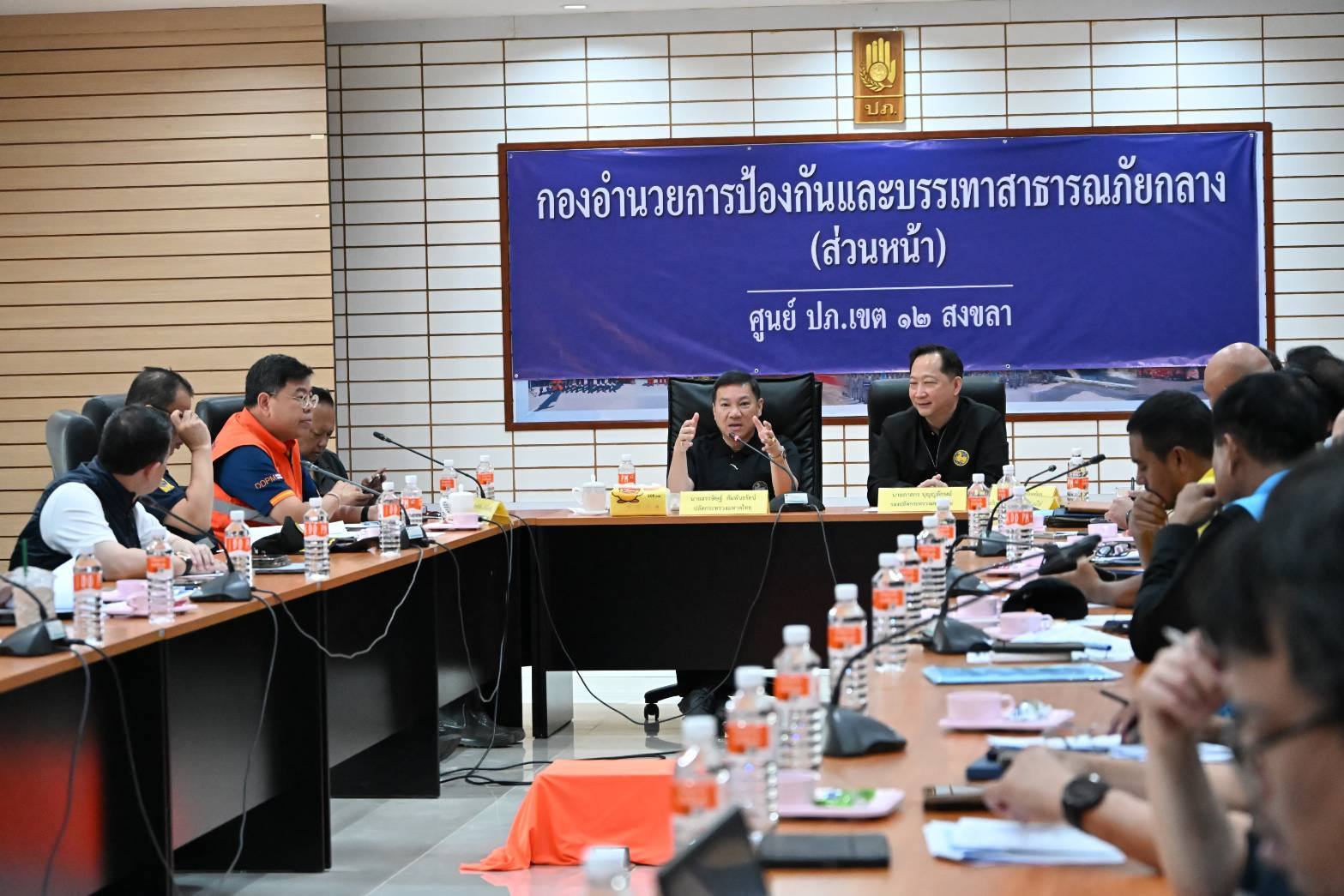 วันนี้ (2 ธ.ค. 68) เวลา 10.00 น. ภายหลังจากการลงพื้นที่ติดตามการฟื้นฟูชุมชนมงคลหรรษาเขตเทศบาลนครหาดใหญ่ในช่วงเช้า นายอรรษิษฐ์ สัมพันธรัตน์ ปลัดกระทรวงมหาดไทย เรียกประชุมติดตามความก้าวหน้าการฟื้นฟูพื้นที่เขตเทศบาลนครหาดใหญ่ตามข้อสั่งการ นายอนุทิน ชาญวีรกูล นายกรัฐมนตรีและรัฐมนตรีว่าการกระทรวงมหาดไทย "7 วันชาวหาดใหญ่ได้กลับบ้าน 14 วันต้องสะอาด" โดยมี นายภาสกร บุญญลักษม์ รองปลัดกระทรวงมหาดไทย หัวหน้ากลุ่มภารกิจด้านกิจการความมั่นคงภายใน นายธีรุตม์ ศุภวิบูลย์ผล อธิบดีกรมส่งเสริมการปกครองท้องถิ่น นายชัยรัตน์ แก้วเพียงเพ็ญ รองอธิบดีกรมป้องกันและบรรเทาสาธารณภัย นายเกิดศักดิ์ ยะโสธร รองอธิบดีกรมโยธาธิการและผังเมือง นายจิรวัตร์ มณีโชติ รองผู้ว่าราชการจังหวัดสงขลา ร.ต.อ.เขตรัฐ ชาญศิลป์ รองผู้ว่าราชการจังหวัดสมุทรสาคร ช่วยราชการสำนักงานปลัดกระทรวงมหาดไทย นายอัธยา นวลอุทัย ผู้ช่วยปลัดกระทรวงมหาดไทย หัวหน้าส่วนราชการ ฝ่ายปกครอง สาธารณสุข รวมถึงนายณรงค์พร ณ พัทลุง นายกเทศมนตรีนครหาดใหญ่ และเจ้าหน้าที่ทุกฝ่ายร่วมประชุม ณ กองอำนวยการป้องกันและบรรเทาสาธารณภัยกลาง (ส่วนหน้า) ศูนย์อำนวยการป้องกันและบรรเทาสาธารณภัยเขต 12 ขลา อ.หาดใหญ่ จ.สงขลา