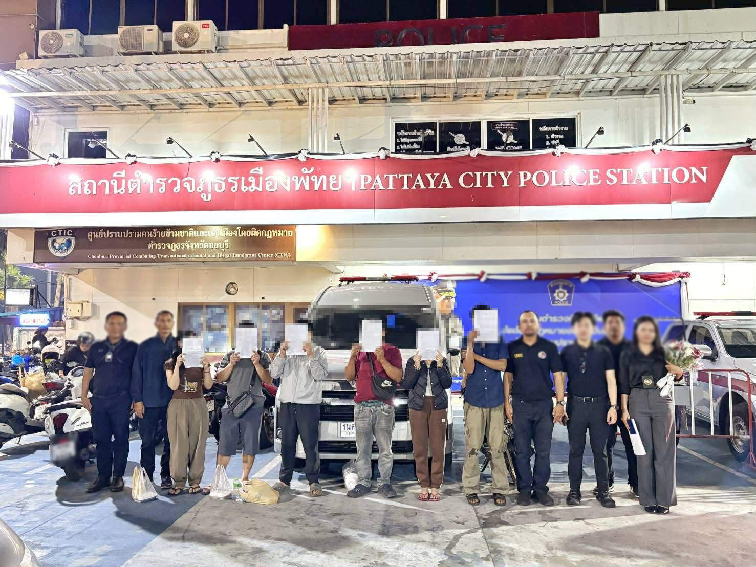 ชุดปฏิบัติการกระจายกำลังตรวจเข้มตามจุดเสี่ยง บริเวณถนนเลียบชายหาดพัทยา และถนนพัทยาสายสอง ซึ่งเป็นแหล่งค้าขายและแหล่งท่องเที่ยวสำคัญ ก่อนพบแรงงานต่างด้าวหลายรายลักลอบทำอาชีพผิดกฎหมาย ทั้งขับรถพ่วงขายผลไม้ เข็นรถขายโรตี รวมถึงเดินเร่ขายดอกไม้รบเร้านักท่องเที่ยว รวมทั้งหมด 6 ราย แยกเป็น เวียดนาม 4 ราย (ชาย 2 หญิง 2), เมียนมา 1 ราย, และ กัมพูชา 1 ราย