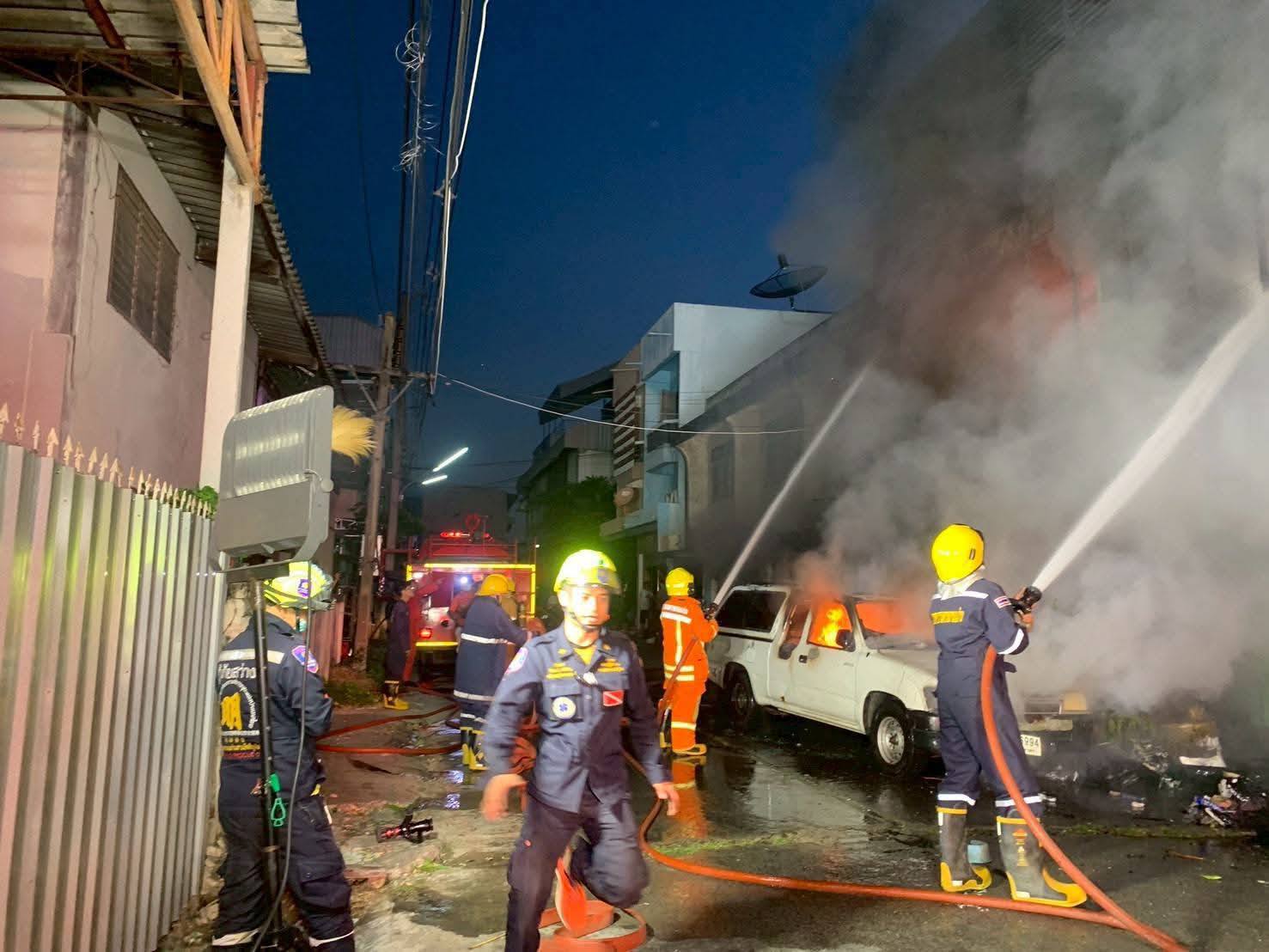 ที่เกิดเหตุ ลักษณะเป็นห้องแถว 3 ชั้นที่ปลูกติดกัน พบว่าเพลิงกำลังลุกไหม้ทั้งหลังและมีคนติดอยู่ในบ้าน ทางเจ้าหน้าที่กู้ภัยพร้อมเจ้าหน้าที่ดับเพลิงใช้เวลา 4 ชั่วโมง จึงควบคุมเพลิงได้ในวงจำกัด และหลังจากเพลิงสงบลง ชุกปฎิบัติการภายในอาคารจึงเข้าไปตรวจสอบ พบร่างของผู้เสียชีวิตภายในบ้านบริเวณชั้นสอง สภาพถูกไฟคลอกร่าง ตรวจสอบทราบต่อมา เป็นชายไทย อายุประมาณ 50 ปี