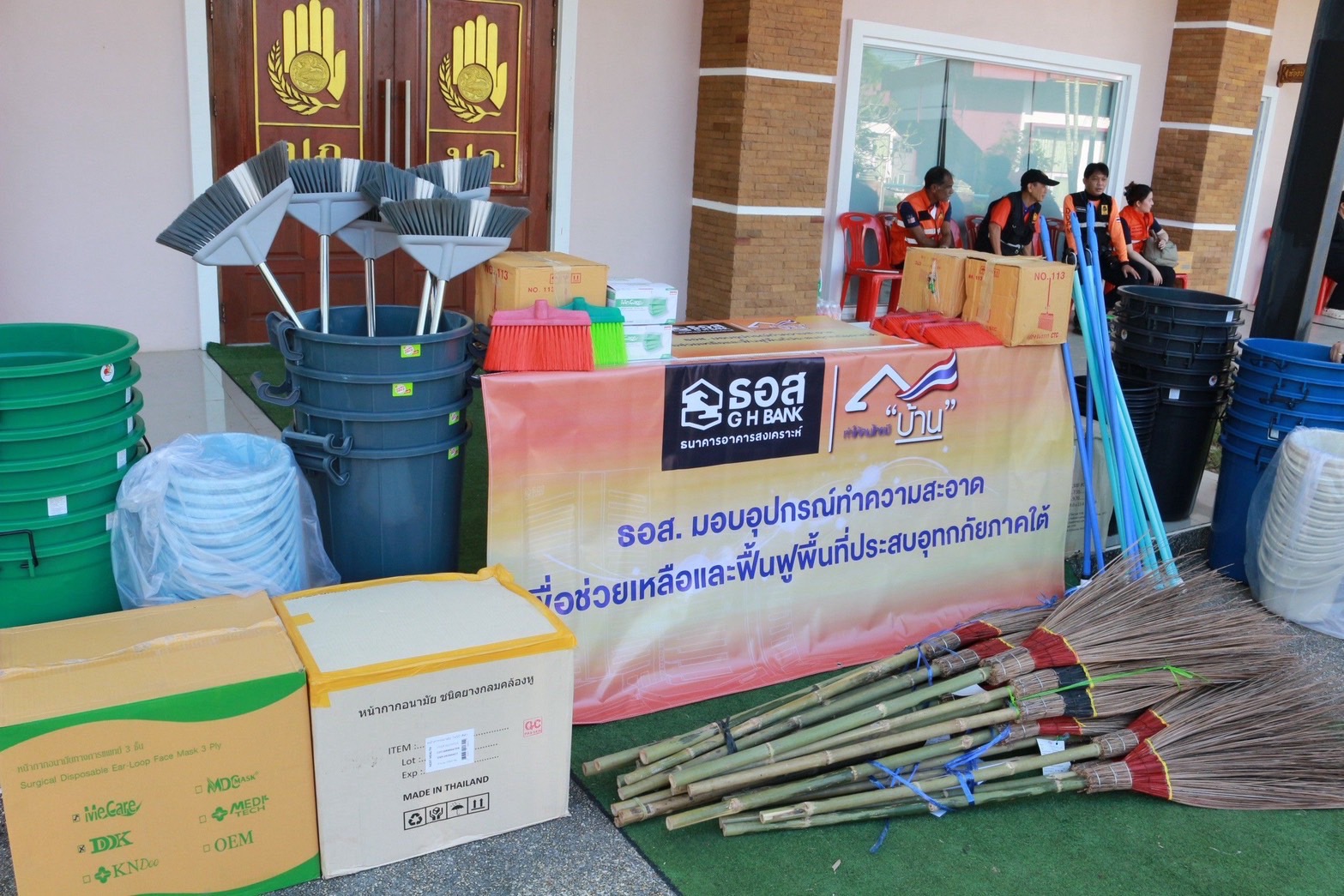 นายเดชา พฤกษ์พัฒนรักษ์ กรรมการธนาคารอาคารสงเคราะห์ ในฐานะประธานกรรมการกำกับดูแลกิจการที่ดีและความรับผิดชอบต่อสังคมและสิ่งแวดล้อม (CG&CSR) เปิดเผยว่า จากสถานการณ์อุทกภัยในพื้นที่จังหวัดสงขลา ส่งผลให้บ้านเรือนประชาชนได้รับความเสียหาย ธอส. ในฐานะสถาบันการเงินเฉพาะกิจของรัฐ ที่มีพันธกิจ “ทำให้คนไทยมีบ้าน” พร้อมช่วยฟื้นฟูที่อยู่อาศัยให้กับประชาชนให้กลับเข้าสู่สภาวะปกติ ได้ลงพื้นที่มอบอุปกรณ์ทำความสะอาด จำนวนกว่า 6,000 ชิ้น อาทิ ไม้กวาดทางมะพร้าว ไม้กวาดด้ามพลาสติก ด้ามสแตนเลส แปรงขัดพื้นเอนกประสงค์ แปรงขัดพื้นพลาสติก ถังน้ำ 12 ลิตร และหน้ากากอนามัยทางการแพทย์ ให้แก่ประชาชนในพื้นที่ประสบอุทกภัยจังหวัดสงขลา โดยมีนายชัยรัตน์ แก้วเพียงเพ็ญ รองอธิบดีกรมป้องกันและบรรเทาสาธารณภัย เป็นผู้รับมอบ พร้อมกันนี้ธนาคารยังให้คำแนะนำแนวทางการให้ความช่วยเหลือ เยียวยา และฟื้นฟู ตามนโยบายของสมาคมสถาบันการเงินของรัฐ เพื่อช่วยบรรเทาความเดือดร้อนให้แก่ผู้ประสบอุทกภัยภาคใต้
