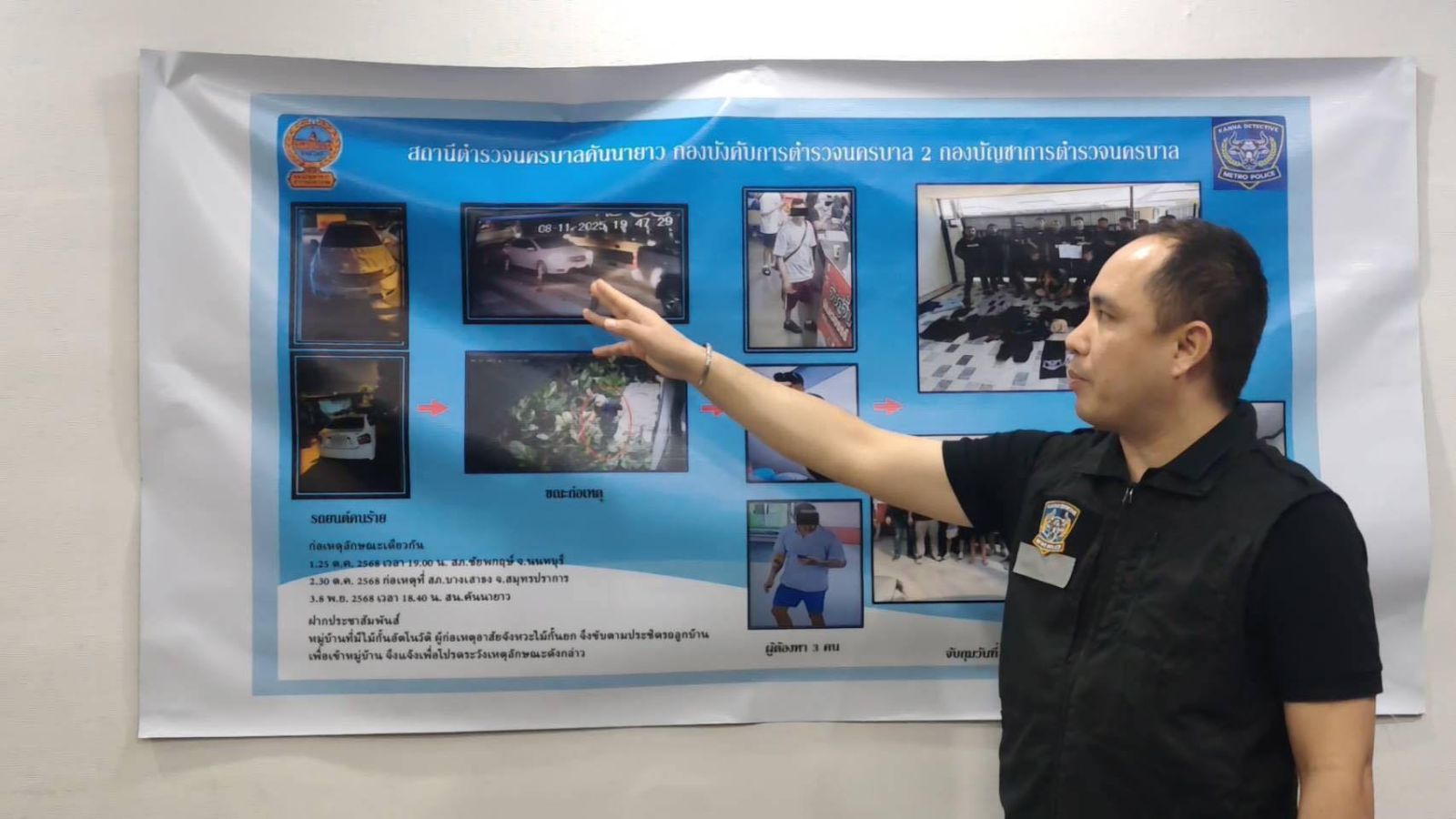 สืบเนื่องจากเมื่อวันที่ 8 พฤศจิการยน 2568 เวลาประมาณ 18.40 น. ได้มีเหตุลักทรัพย์ฯ ที่บ้าน 2 หลัง ในหมู่บ้านแห่งหนึ่ง ย่านสุขาภิบาล 5 แขวงออเงิน เขตสายไหม กรุงเทพฯ โดยคนร้ายได้งัดตู้เซฟ และทรัพย์สินอื่นๆ ไปมูลค่ารวมประมาณ 3,800,000 บาท ต่อมาเจ้าหน้าที่ตำรวจฝ่ายสืบสวน สน.คันนายาว และเจ้าหน้าที่ตำรวจ กก.สส.บก.น.2 ได้ทำการสืบสวนติดตามกลุ่มผู้ต้องหาที่ก่อเหตุในครั้งนี้ จนรู้ตัวผู้ต้องหาทั้งหมด และได้ดำเนินการยื่นคำร้องขอหมายจับต่อศาลอาญามีนบุรี โดยศาลอนุมัติหมายจับผู้ต้องหาทั้ง 3 คน