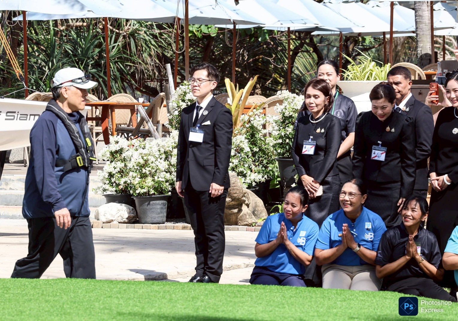 โดยมี พลเรือเอก ไพโรจน์ เฟื่องจันทร์ ผู้บัญชาการทหารเรือ พลเรือเอก สมประสงค์ นิลสมัย นายกสมาคมกีฬาแข่งเรือใบแห่งประเทศไทย ในพระบรมราชูปถัมภ์ นายประมุขพิสิฐ และนางธันยรัศม์ อัจฉริยะฉาย ประธานกรรมการบริหาร เครือกะตะกรุ๊ป รีสอร์ท คณะกรรมการจัดการแข่งขัน ฯ และนักกีฬา เฝ้าทูลละอองธุลีพระบาทรับเสด็จ