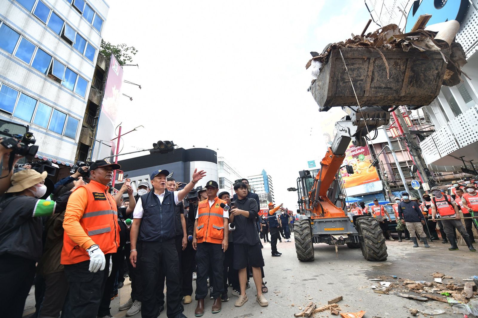 ขณะที่เรื่องขยะ หน่วยงานที่เกี่ยวข้องได้ช่วยกันขนย้ายเพื่อไปทำลาย อย่างไรก็ยังเก็บไม่ทันต่อให้เรามีการระดมทรัพยากรมาก เนื่องจากเป็นขยะที่อยู่ในบ้าน และช่วงที่ประชาชนกลับเข้าไปในบ้าน ก็ไปทำความสะอาดบ้านเรือนก็นำขยะออกมากองด้านหน้าอีก แต่ก็ไม่เป็นไร ขอทีมงานอย่าท้อถอย เชื่อว่าในการดำเนินขยะจะลดน้อยลงตามลำดับ จึงขอให้ใช้เวลาในช่วงหนึ่งสัปดาห์นี้ พยายามกำจัดขยะที่มีจำนวนมากโดยเฉพาะเร่งเก็บในช่วงกลางคืน