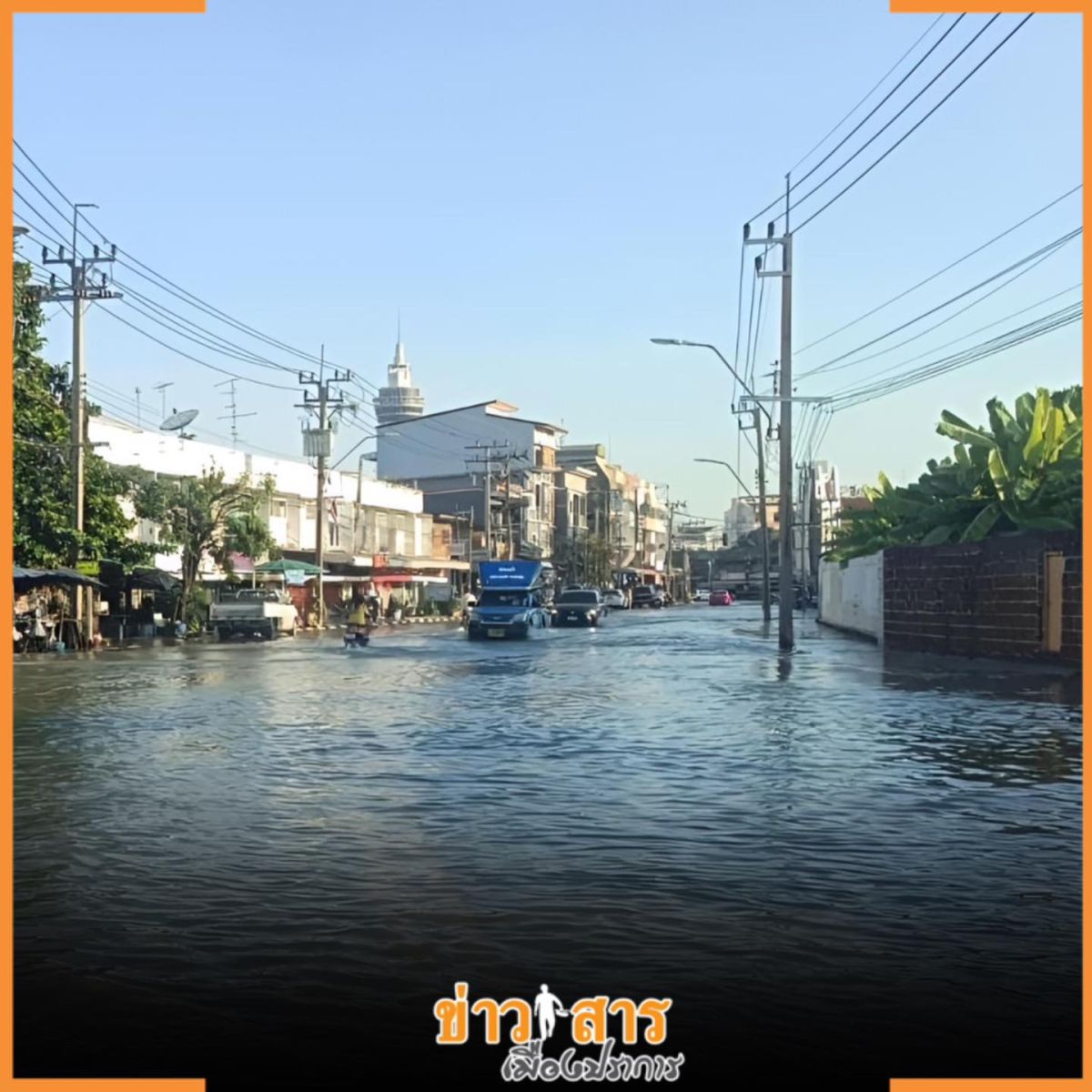 - ถนนท้ายบ้าน เริ่มไหลเข้ามาท่วมแล้ว ทุกช่องทาง