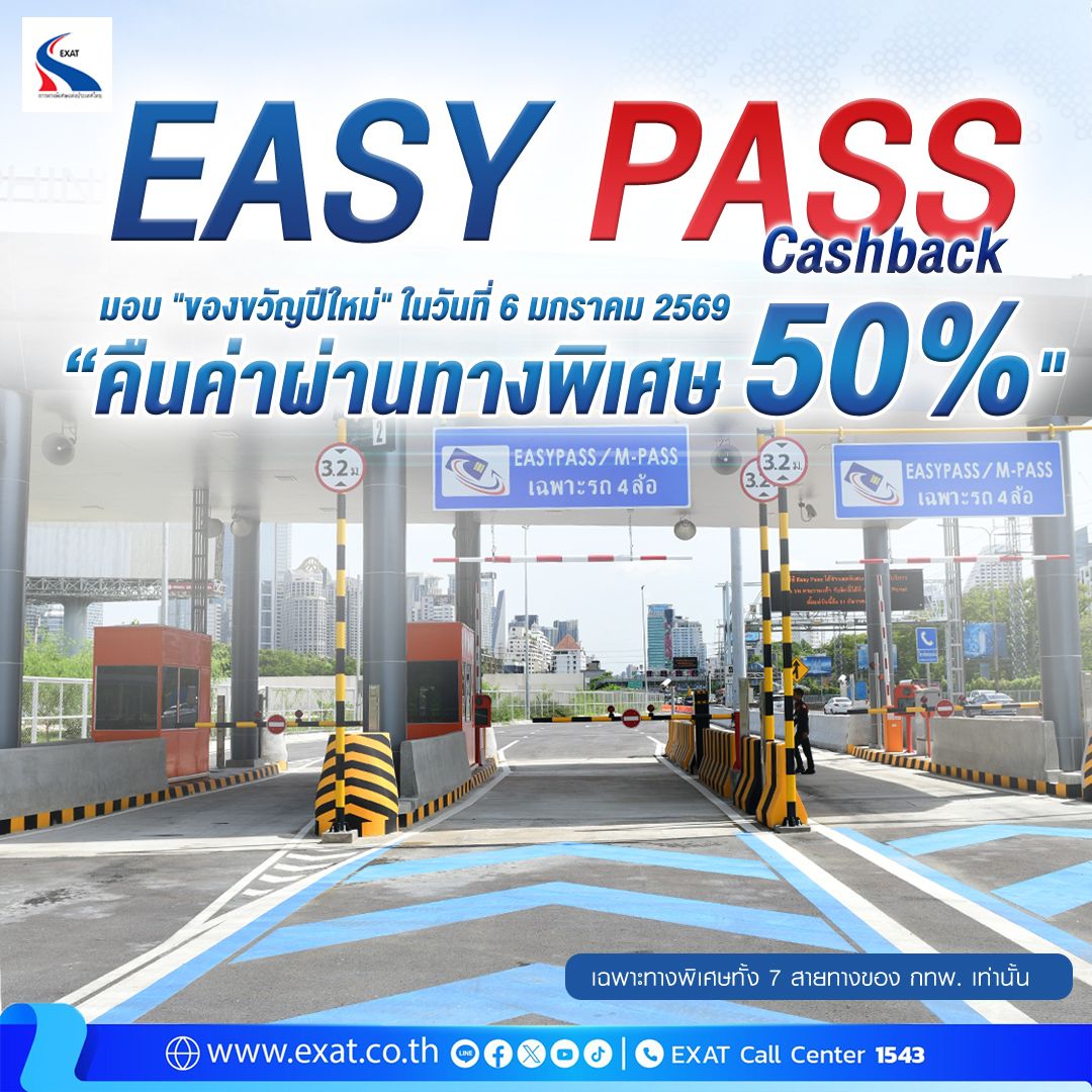 กทพ. มอบแคมเปญ EASY PASS...Cashback มอบ "ของขวัญปีใหม่" ในวันที่ 6 มกราคม 2569 “คืนค่าผ่านทางพิเศษ 50%" *เฉพาะทางพิเศษของ กทพ. เท่านั้น