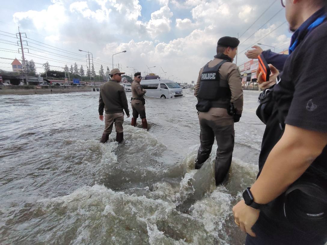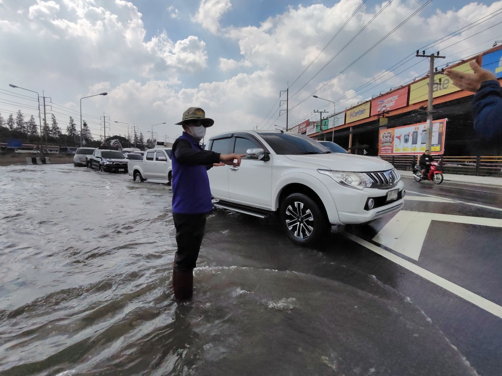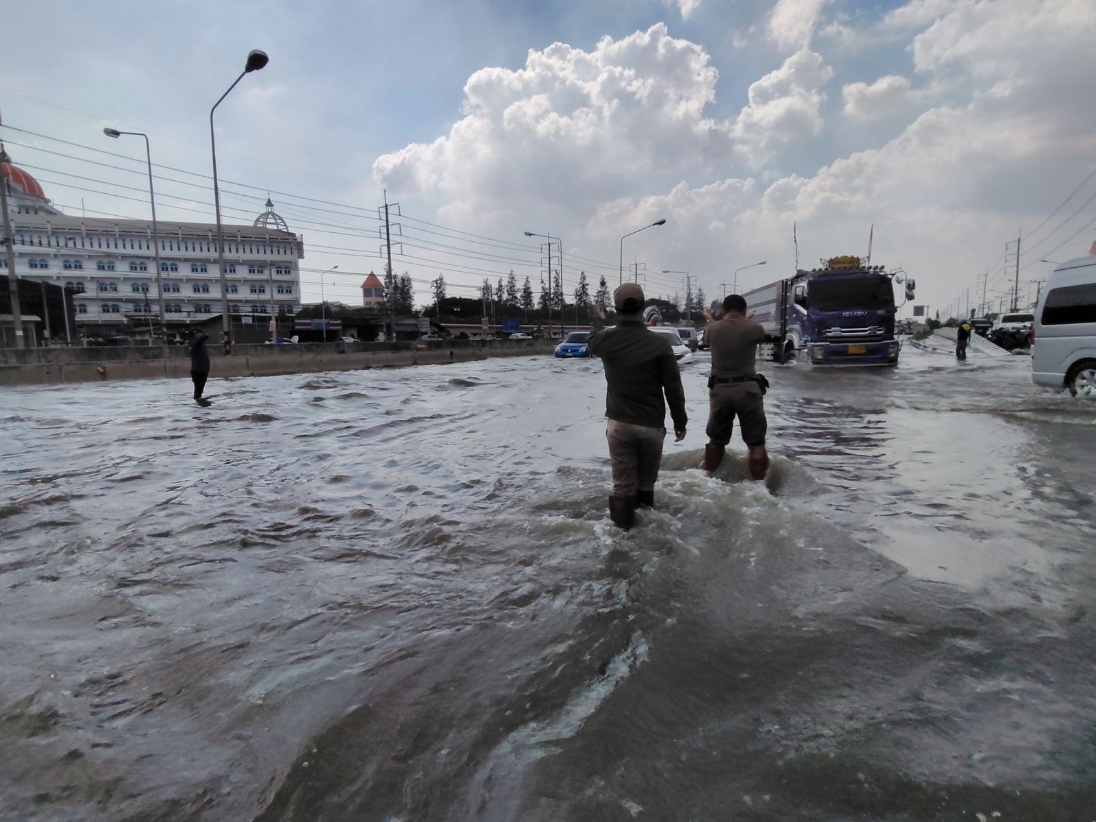 อัปเดตสถานการณ์น้ำทะเลหนุน! ถนนพระราม 2 ฝั่งขาเข้า กรุงเทพฯ ช่วง กม.39+800 หน้าดูโฮม มหาชัย น้ำท่วมขังผิวการจราจร ในช่องทางหลักสูงมาก ระดับ 30-60 ซม. เจ้าหน้าที่ขอความร่วมมือผู้ขับขี่รถบรรทุก รถใหญ่ แนะนำวิ่งช่องทางขวา เพื่อเปิดทางให้รถนั่งส่วนบุคคล รถเล็กเบี่ยงออกช่องทางคู่ขนานได้สะดวก #รายงานจราจร #รถติด #น้ำหนุน #น้ำทะเลหนุน #FM91