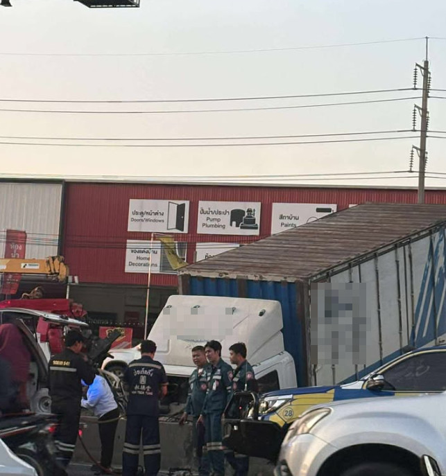 06.43 น. ถนนเทพรัตน (บางนา-ตราด) ขาออก หน้าโลตัส บางนา ก่อนขึ้นสะพานกลับรถเมกาบางนา อุบัติเหตุ รถบรรทุกเสียหลักขึ้นไปปีนเกาะกลางถนน ระหว่างช่องทางหลัก และช่องทางคู่ขนาน รถเริ่มชะลอตัวแล้ว #รายงานจราจร #รถติด #อุบัติเหตุ #FM91
