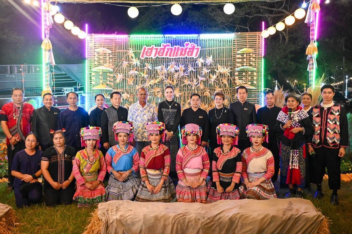 จากนั้น ประธานในพิธีและคณะเดินเยี่ยมชมผลิตภัณฑ์ชุมชน ผลิตภัณฑ์ผ้าไทยพื้นเมือง เงิน ทอง ลายโบราณ และเยี่ยมชมหมู่บ้านวิถีไทย ขององค์กรปกครองส่วนท้องถิ่นทั้ง 6 แห่ง รับชมชุดการแสดงวัฒนธรรมชนเผ่าพื้นเมือง การแสดงชุด น่อเจี่ยซอ โดยวิทยาลัยนาฏศิลปสุโขทัย ต่อจากนั้น นายสมเจตน์ ลิมปะพันธุ์ เลขานุการรัฐมนตรีว่าการกระทรวงมหาดไทย กล่าวต้อนรับประธานในพิธี ประธานกล่าวพบปะประชาชน ณ เวทีกลาง และเยี่ยมชมบูทวัฒนธรรม